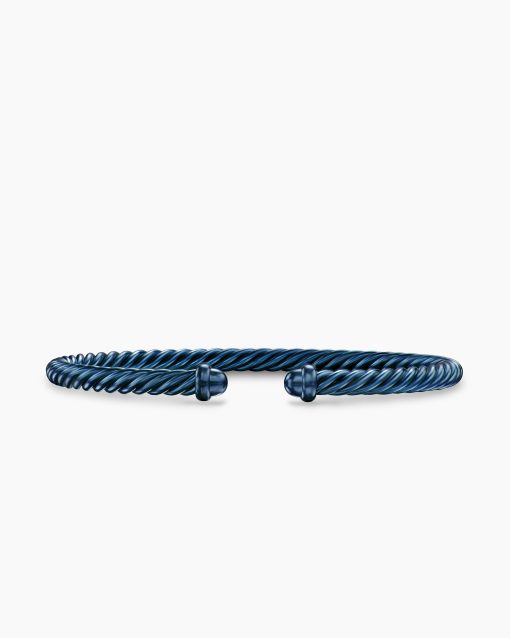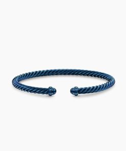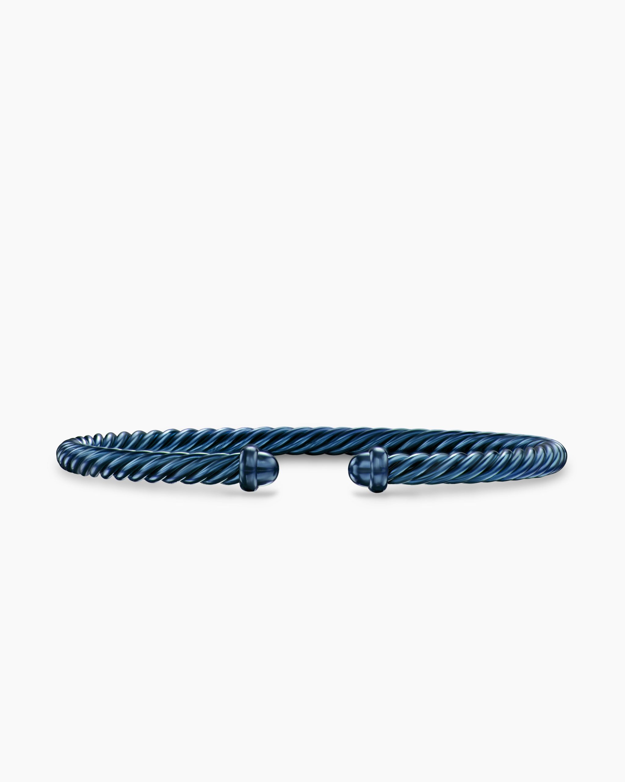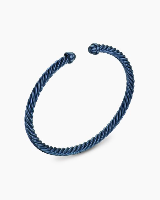 David Yurman’s artistic signature, Cable began as a bracelet that he hand-twisted from 50 feet of wire. For the past 30 years, he has evolved the twisted helix into a myriad of designs.Navy aluminumBracelet, 4mm