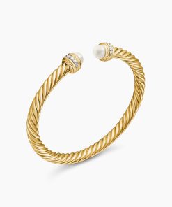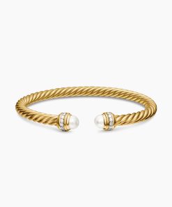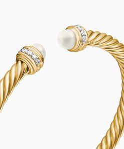 David Yurman’s artistic signature, Cable began as a bracelet that he hand-twisted from 50 feet of wire. For the past 30 years, he has evolved the twisted helix into a myriad of designs. 18-karat yellow goldCultured freshwater pearls, 5.75-6mmPavé diamonds, 0.22 total carat weightBracelet, 5mmCablespira® is a patented DY construction that is highly flexible and exceptionally comfortable to wear.