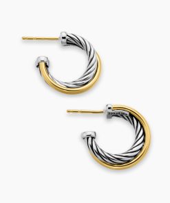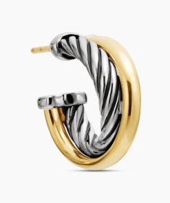 The Crossover Collection® explores the rhythmic weaving of line to create form and movement. Using a dynamic range of smooth and cabled cords, the individual strands are meticulously entwined. Sterling silver with 18-karat bonded yellow goldEarrings, 17mm