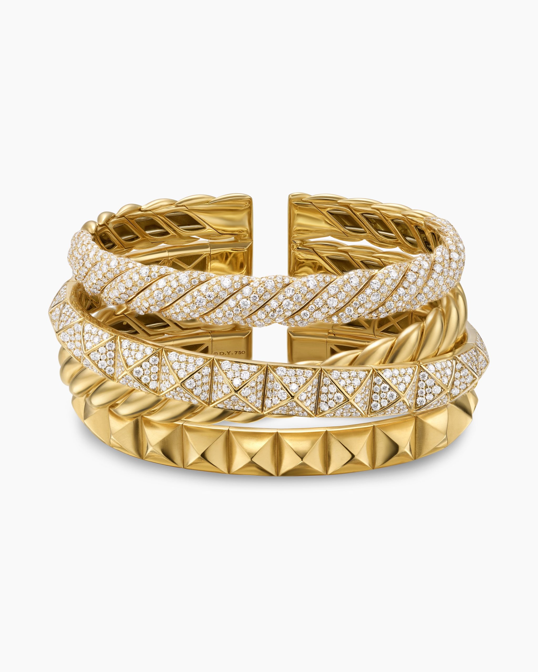 Perfect triangles placed within the rhythmic weaving of smooth and Cabled strands intertwine into multifaceted designs as a symbol of unity.18-karat yellow goldPavé-set diamonds, 6.51 total carat weightBracelet, 33mm