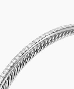 The DY Crossover® Collection explores the rhythmic weaving of line to create form and movement. Using a dynamic range of smooth and cabled cords, the individual strands are meticulously entwined.Sterling silverPavé-set diamonds, 0.54 total carat weightBracelet, 6mm