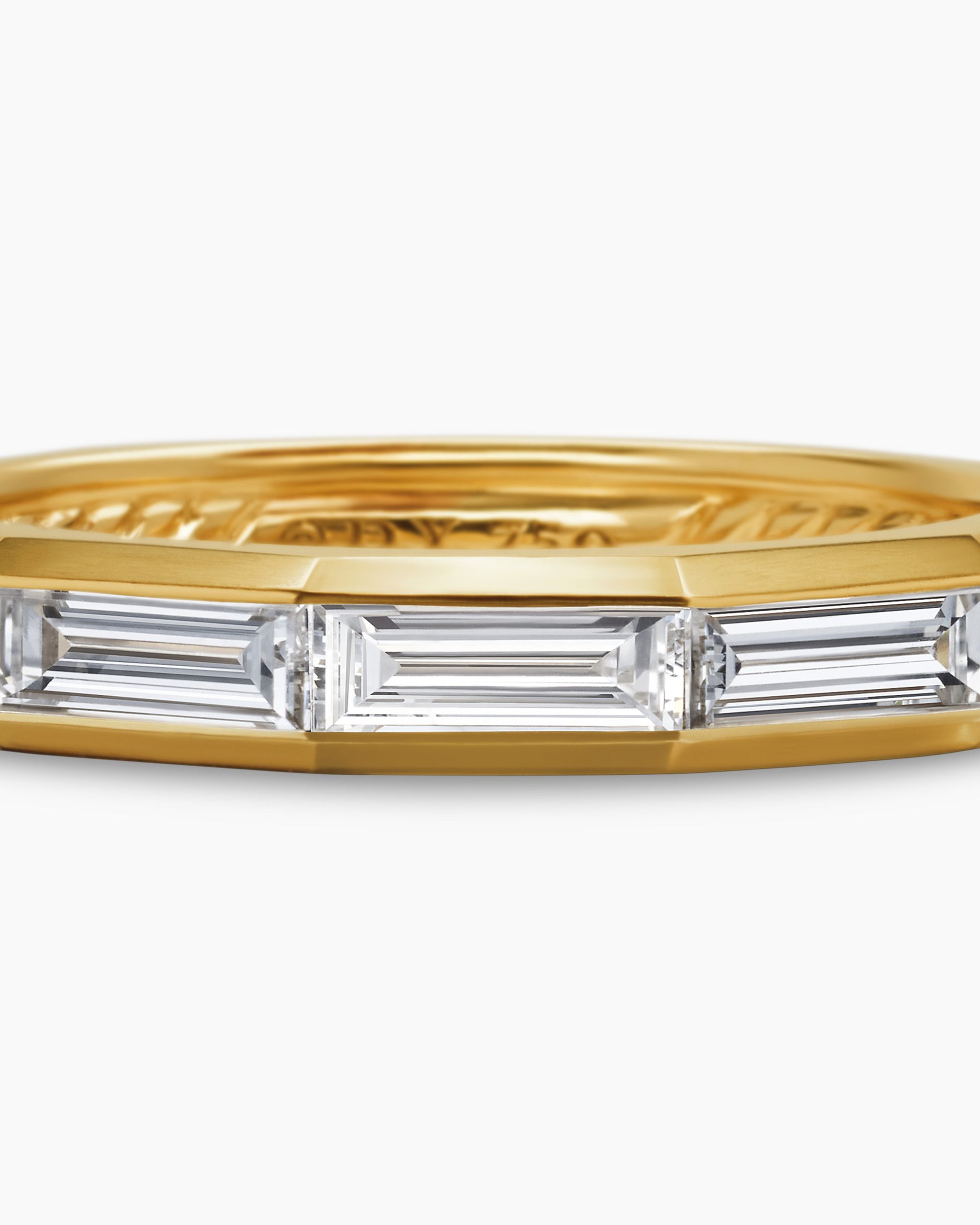 This symbol of enduring love is designed to celebrate your individuality and personal sense of style. 18-karat yellow goldBaguette diamonds, 0.07 total carat weightRing, 3.2mmThis item can be engraved. Please contact customer care for more information.