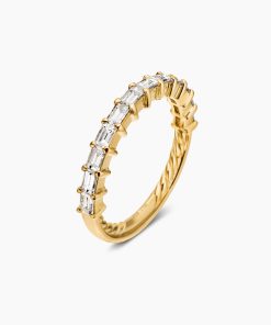 This symbol of enduring love is designed to celebrate your individuality and personal sense of style. 18-karat yellow goldBaguette diamonds, 0.44 total carat weightRing, 2mmThis item can be resized. Please contact customer care for more information.This item can be engraved. Please contact customer care for more information.