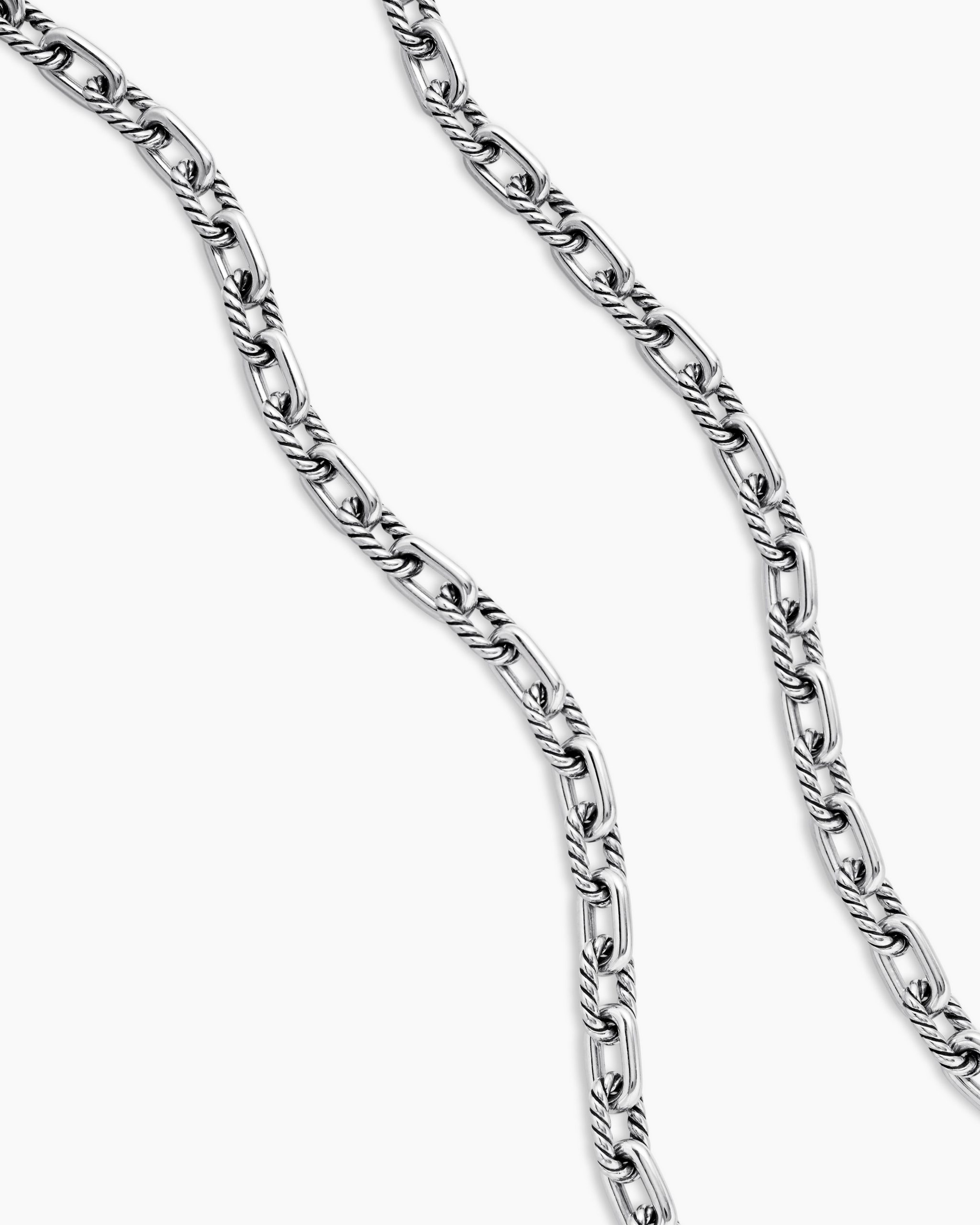 Named for the iconic Manhattan avenue, DY Madison® captures the bold spirit of New York City—unexpected moments and the promise of success. A striking juxtaposition of smooth and Cabled, pillow-shaped links fuses the brand’s signature design elements to create a unique rhythm. At once modern and timeless, these must-have chains are instant heirlooms.Sterling silverNecklace, 5.5mmPush clasp