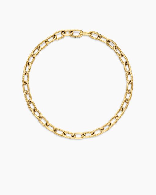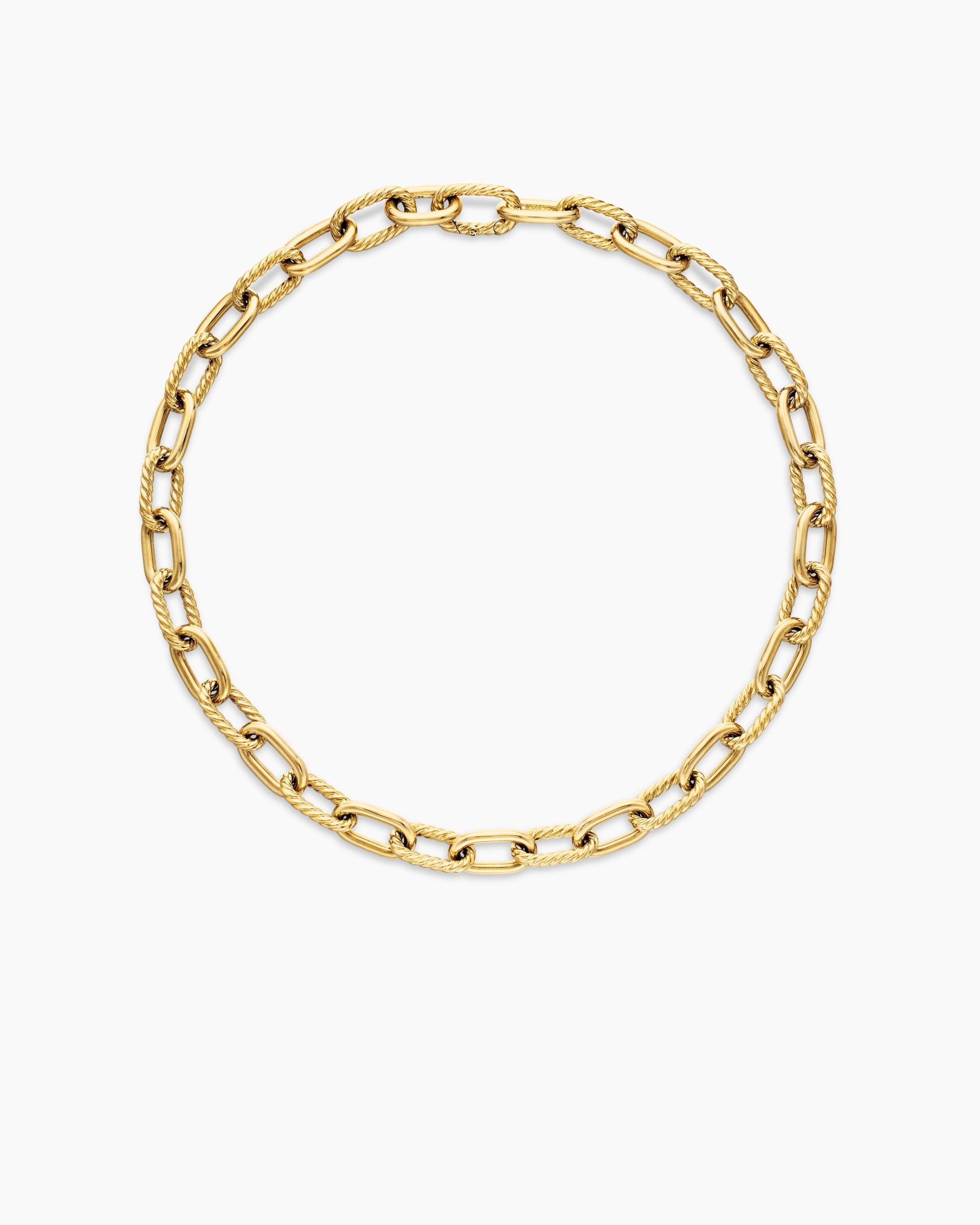 In the DY Madison® Collection, classic chain takes on new life under the artful eye and skillful hand of David Yurman. This sculpted design features alternating Cable and smooth links. 18-karat yellow goldNecklace, 11mmPush clasp