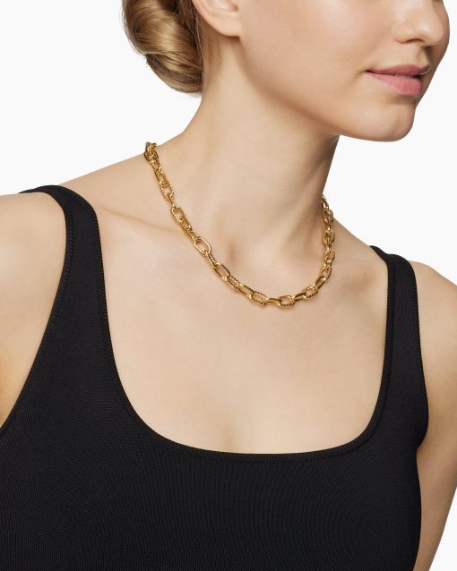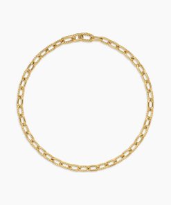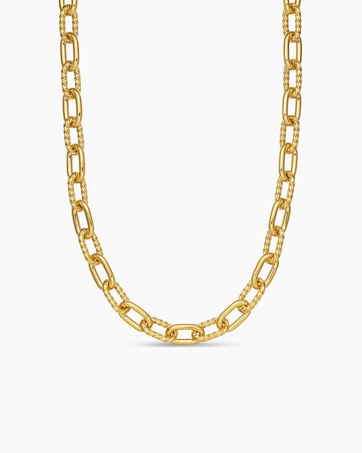 Named for the iconic Manhattan avenue, DY Madison® captures the bold spirit of New York City—unexpected moments and the promise of success. A striking juxtaposition of smooth and Cabled, pillow-shaped links fuses the brand’s signature design elements to create a unique rhythm. At once modern and timeless, these must-have chains are instant heirlooms.18-karat yellow goldNecklace, 8.5mmPush clasp