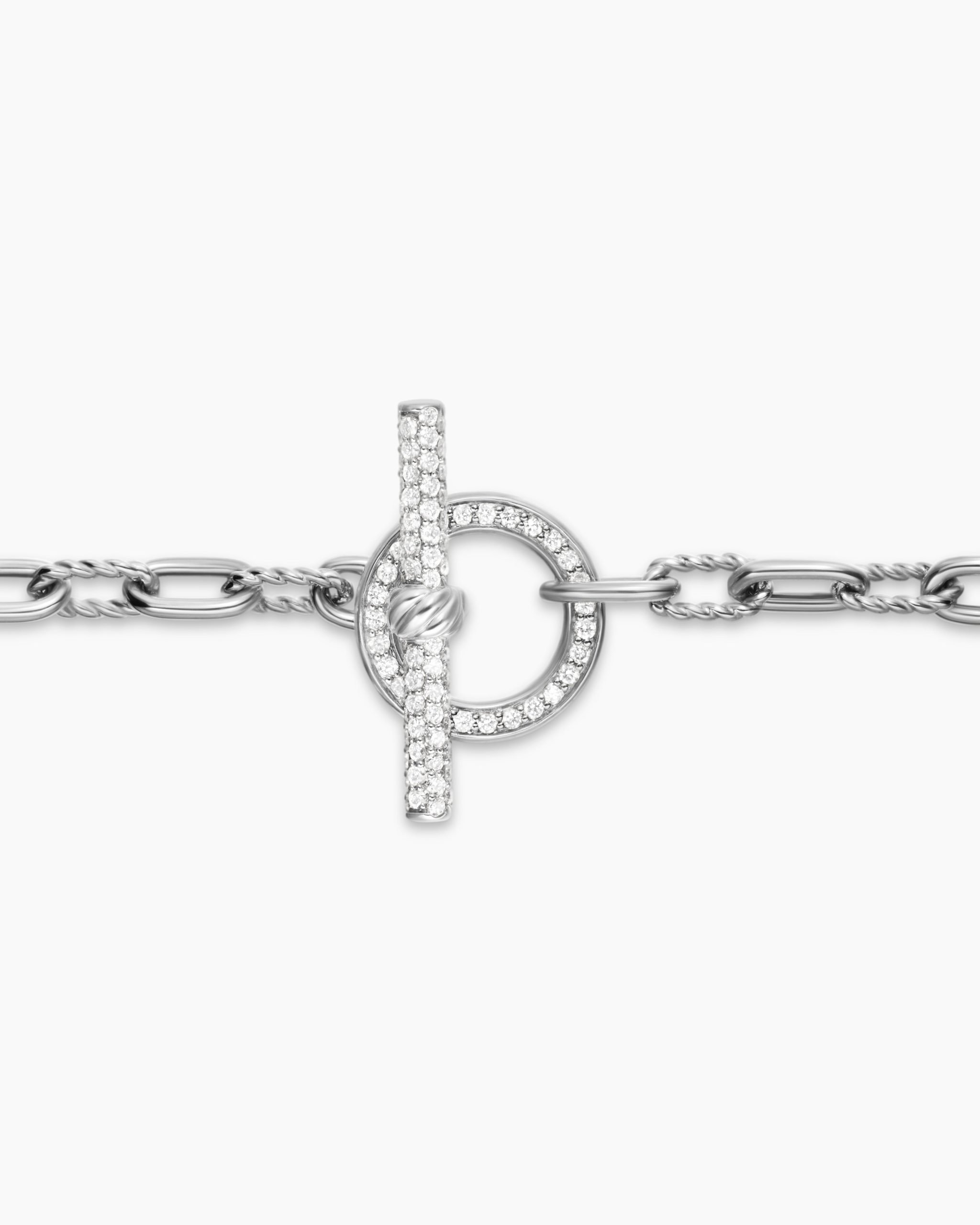 Named for the iconic Manhattan avenue, DY Madison® captures the bold spirit of New York City—unexpected moments and the promise of success. A striking juxtaposition of smooth and Cabled, pillow-shaped links fuses the brand’s signature design elements to create a unique rhythm. At once modern and timeless, these must-have chains are instant heirlooms.Sterling silverPavé-set diamonds, 0.26 total carat weightBracelet, 3mmToggle clasp