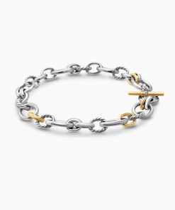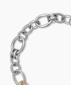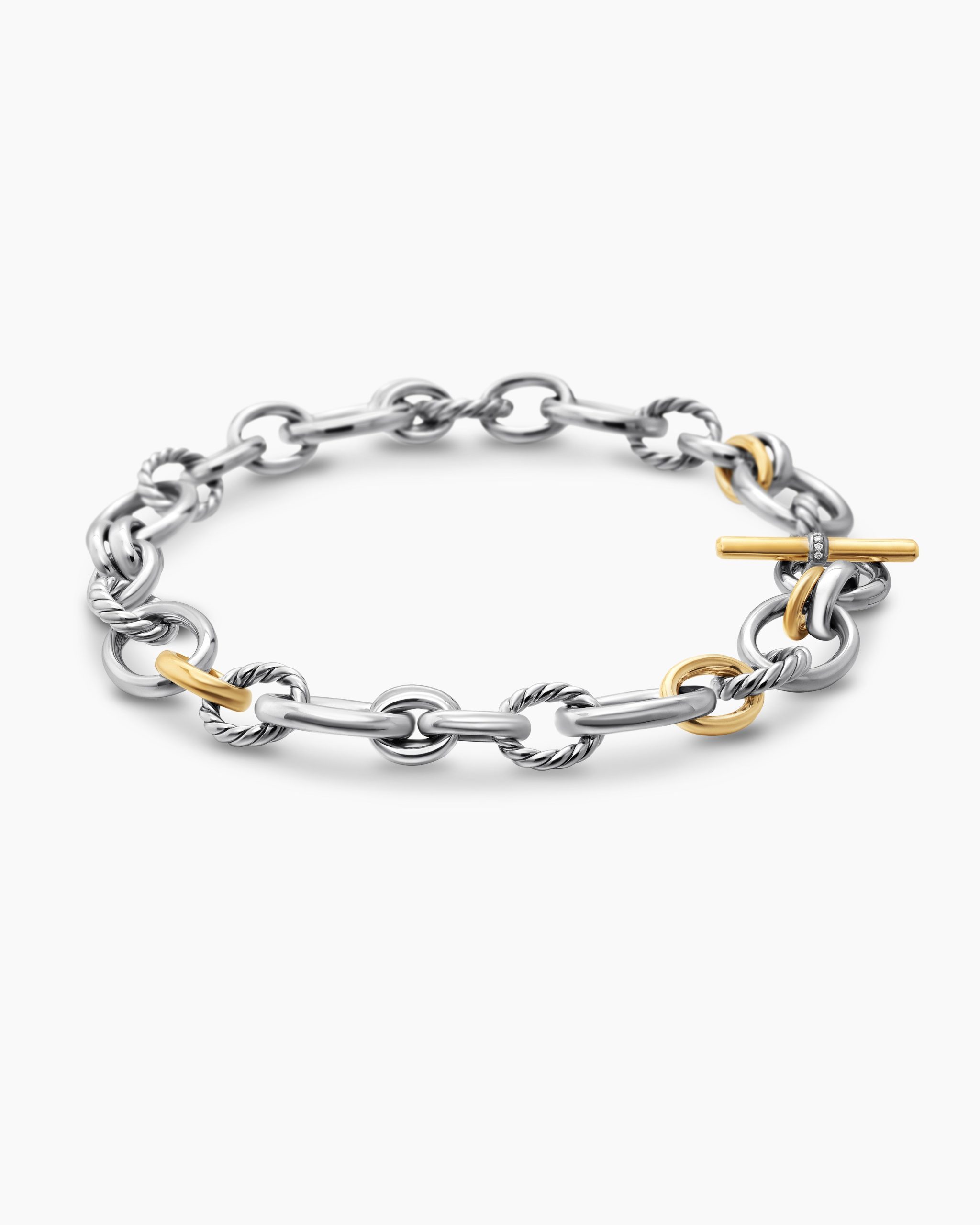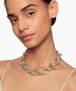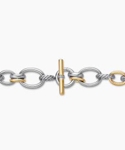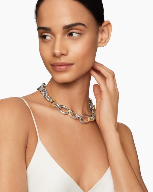 Inspired by SoHo’s historic art scene and galleries, DY Mercer® captures bold creativity and the spirit of New York. The collection channels a youthful energy with exaggerated oval links, unique toggle closures, and stacked silhouettes. Crafted in 18K gold and sterling silver with antique cushion-cut gems, these sculptural designs combine elevated artistry with an effortlessly modern feel.Sterling silver with 18-karat bonded yellow goldPavé-set diamonds, 0.06 total carat weightNecklace, 20-25mmPush clasp