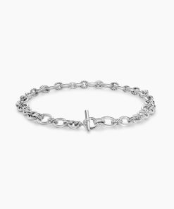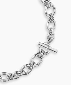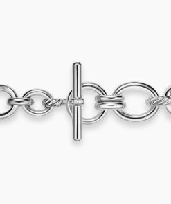 Inspired by SoHo’s historic art scene and galleries, DY Mercer® captures bold creativity and the spirit of New York. The collection channels a youthful energy with exaggerated oval links, unique toggle closures, and stacked silhouettes. Crafted in 18K gold and sterling silver with antique cushion-cut gems, these sculptural designs combine elevated artistry with an effortlessly modern feel.Sterling silverPavé-set diamonds, 0.03 total carat weightNecklace, 8-14.5mmPush clasp