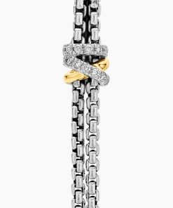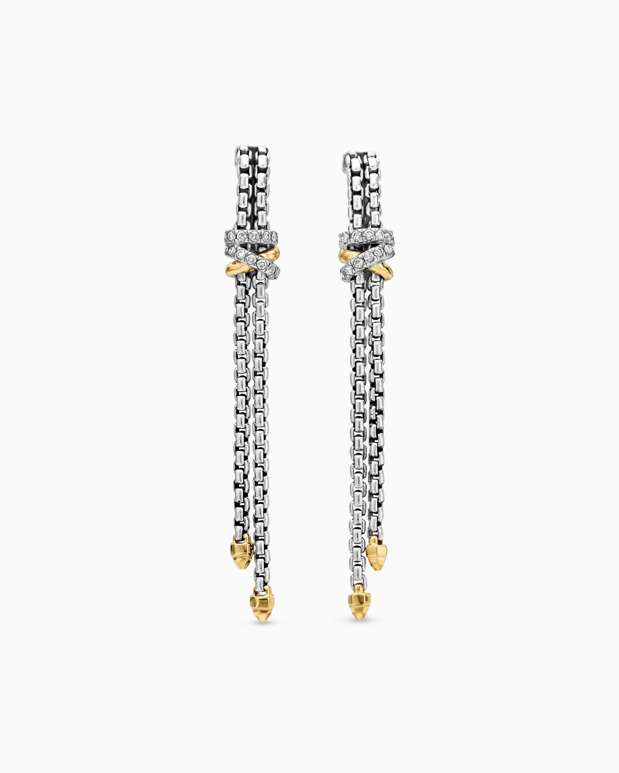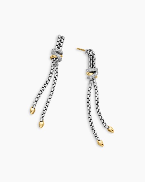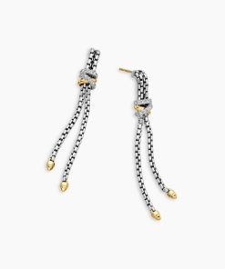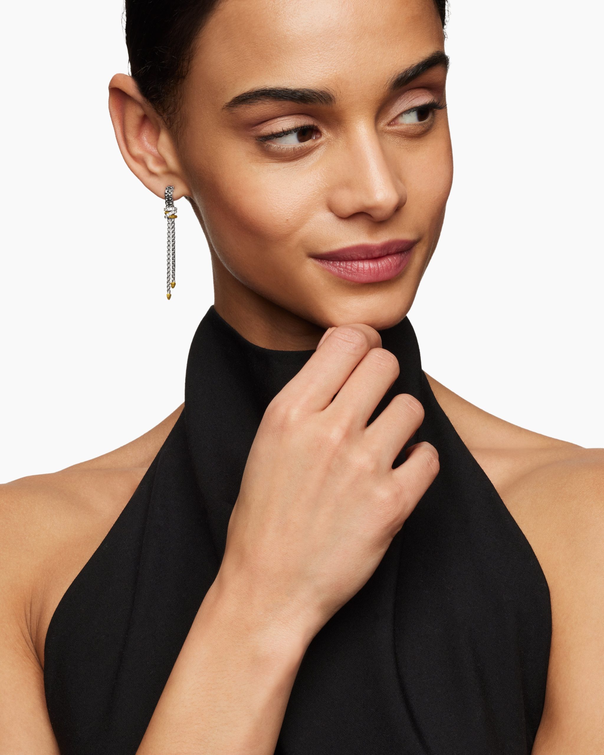 In the Helena Collection, David Yurman returns to the longer, leaner twist of his first handmade Cable bracelet, wrapping the iconic form with 18K yellow gold threads accented with hand-set pavé diamonds. Sterling silver with 18-karat yellow goldPavé diamonds, 0.19 total carat weightEarring drop length, 50.8mm