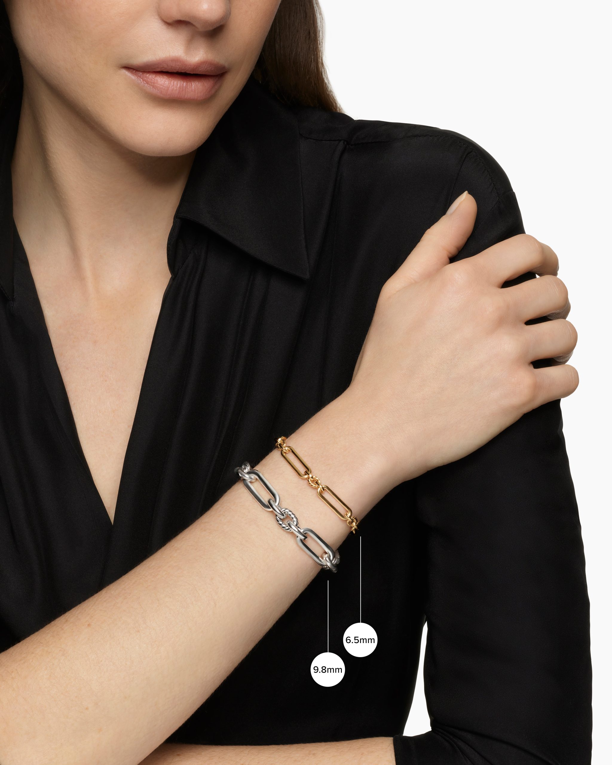 This Lexington design is inspired by the sleek sensibility of ‘30s Manhattan architecture, with clean lines and the juxtaposition of smooth and Cabled metal. Sterling silverBracelet, 9.8mmPush clasp