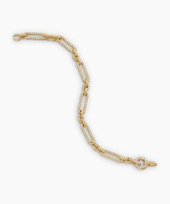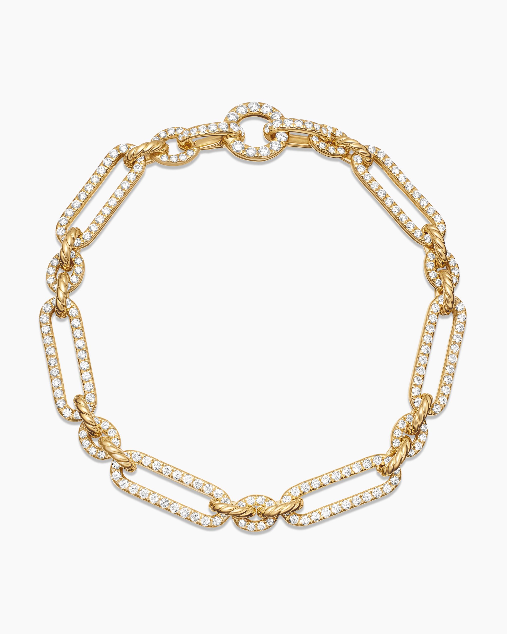 This Lexington design is inspired by the sleek sensibility of ‘30s Manhattan architecture, with clean lines and the juxtaposition of smooth and Cabled metal. 18-karat yellow gold Pavé diamonds, 2.08 total carat weightBracelet, 6.5mmPush clasp