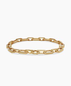 Inspired by classical and original motifs, David Yurman chain necklaces and bracelets showcase masterful craftsmanship, with sculptural links carved and assembled for seamless movement. Ideal for layering, these timeless chains are the foundation of a jewelry collection, whether worn alone or paired with a pendant.18-karat yellow goldPavé-set diamonds, total carat weight ranges from 3.03 to 3.28 (dependent on size)Bracelet, 7mmPush clasp