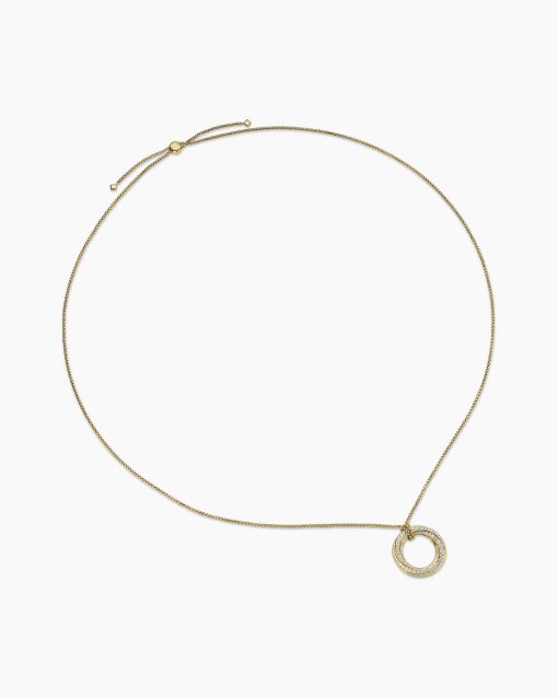 The Crossover Collection® explores the rhythmic weaving of line to create form and movement. Using a dynamic range of smooth and cabled cords, the individual strands are meticulously entwined. 18-karat yellow goldPavé diamonds, 1.61 total carat weightAdjustable length, 36inPendant, 30mmChain, 1.7mmSlider clasp