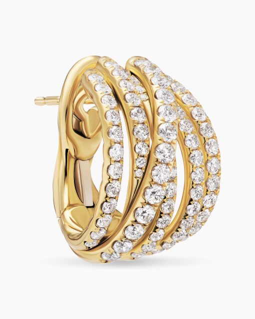 The DY Crossover® Collection explores the rhythmic weaving of line to create form and movement. Using a dynamic range of smooth and cabled cords, the individual strands are meticulously entwined.18-karat yellow goldPavé-set diamonds, 2.24 total carat weightEarrings, 19.6 x 14.1mm