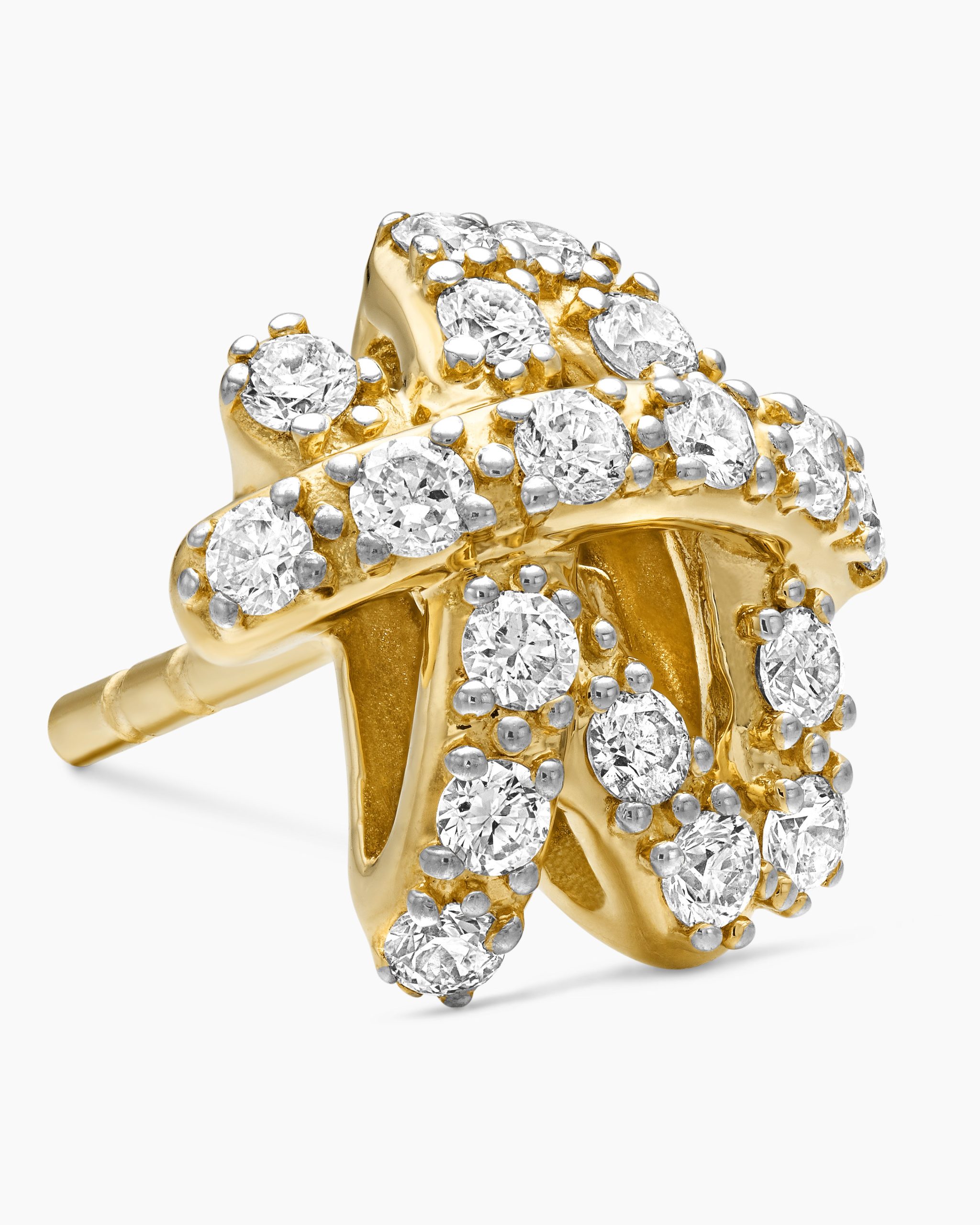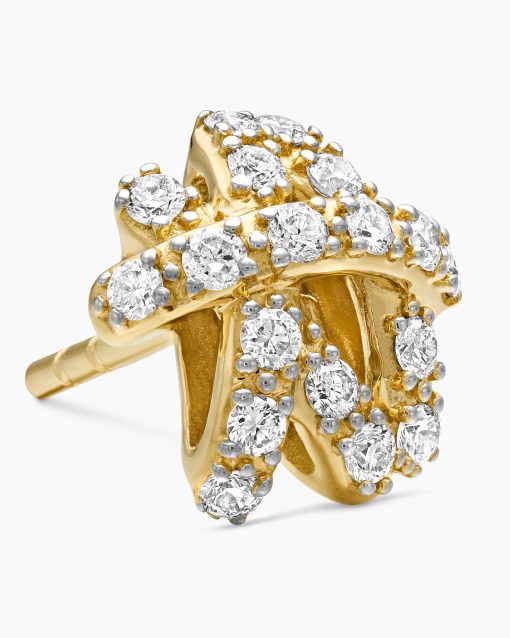 The Crossover Collection® explores the rhythmic weaving of line to create form and movement. Using a dynamic range of smooth and cabled cords, the individual strands are meticulously entwined. 18-karat yellow goldPavé diamonds, 0.31 total carat weightEarrings, 9mm