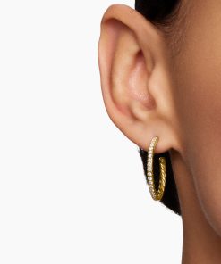 In Sculpted Cable, David Yurman transforms his signature design motif into a carved form. The effect is an entrancing wavelike pattern that retains the dimensional look of Cable’s original helix. 18-karat yellow goldPavé diamonds, 0.52 total carat weightHoop, 25.4 x 2.4mm