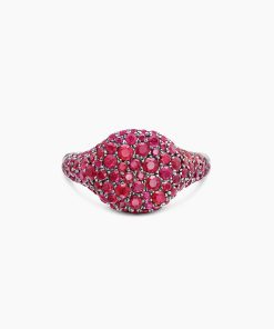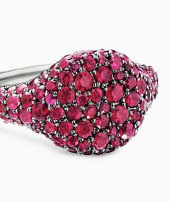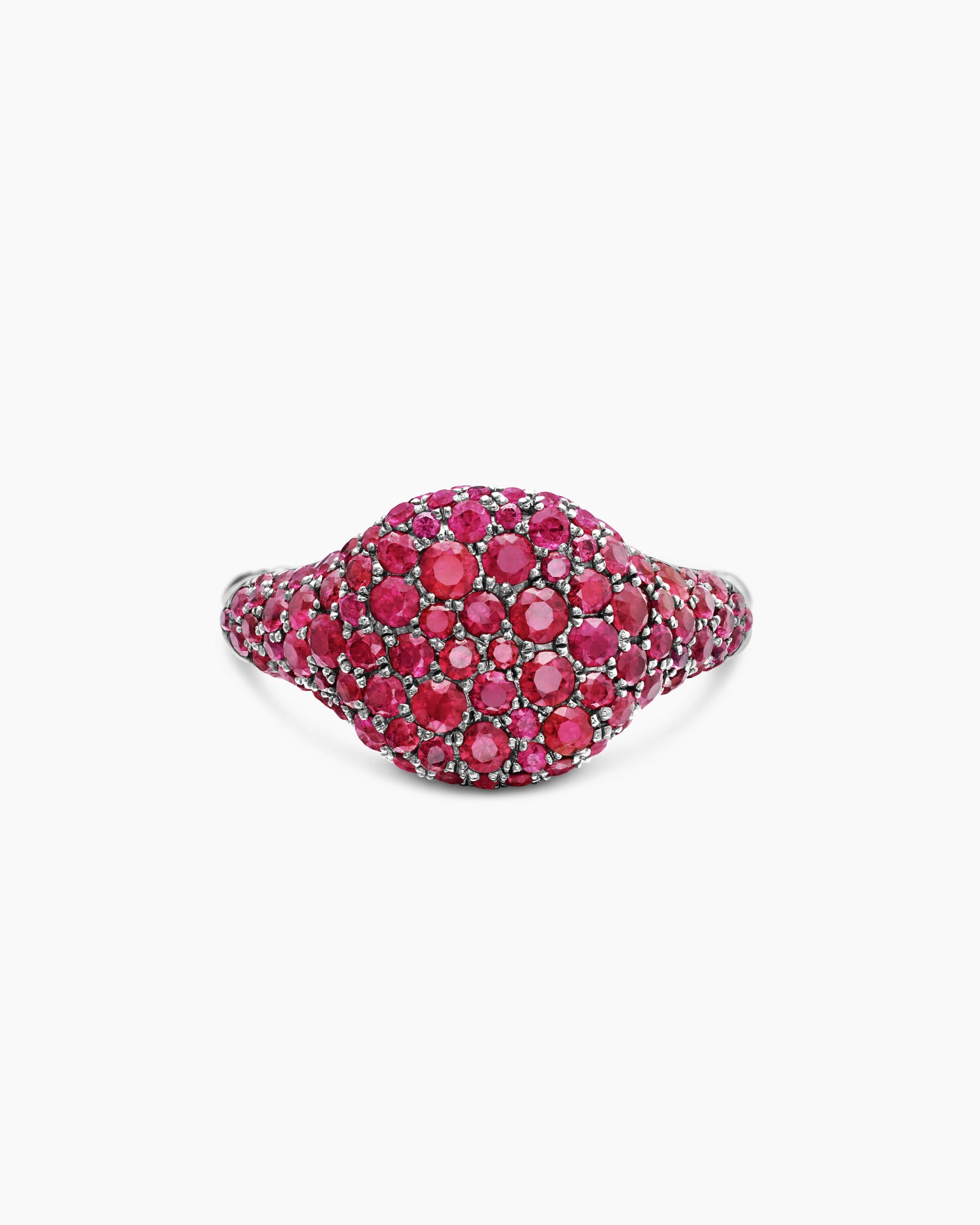 Inspired by the traditional signet ring, the Pinky Ring Collection brings a modern spirit to a classic form with elegant contours. 18-karat white goldPavé red rubies, 0.88 total carat weightRing, 10mm