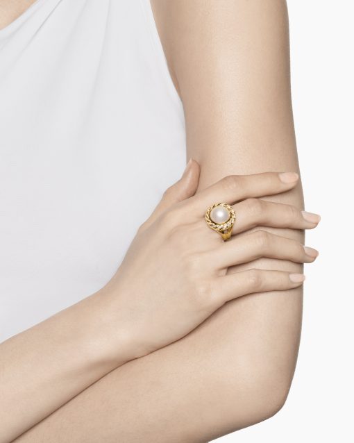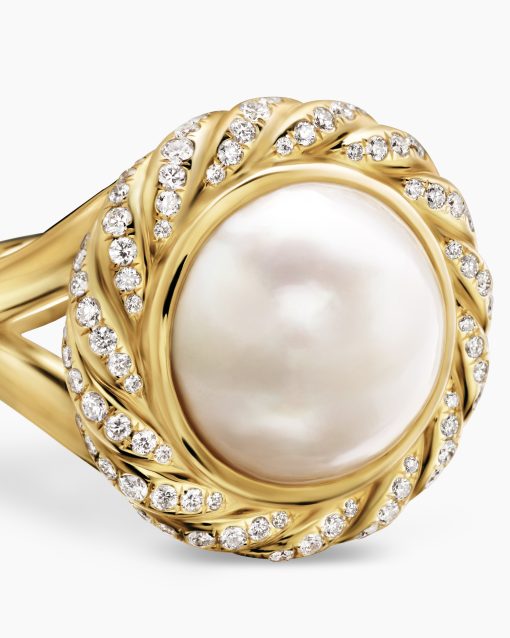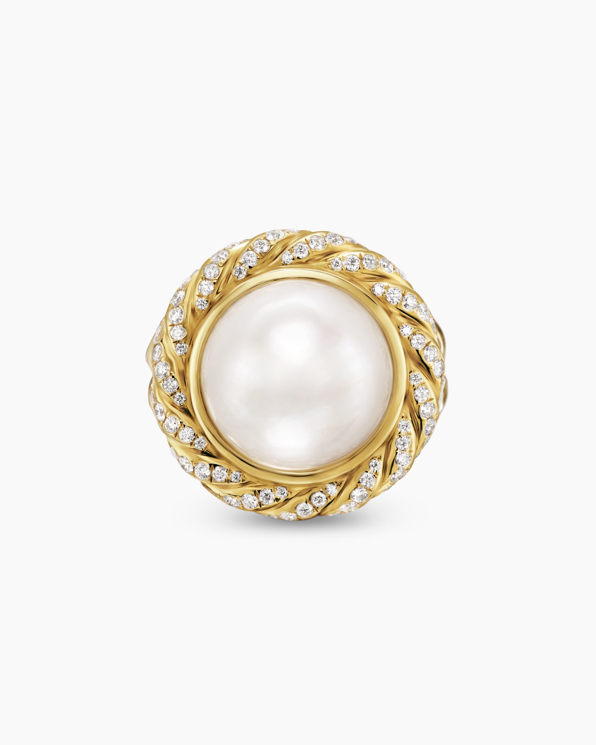 Gifts from nature, the lustrous beauty of pearls has always inspired our timeless designs. 18-karat yellow goldSouth sea white pearl, 15.7mmPavé-set diamonds, 0.58 total carat weightRing, 21mmThis item can be resized. Please contact customer care for more information.This item can be engraved. Please contact customer care for more information.