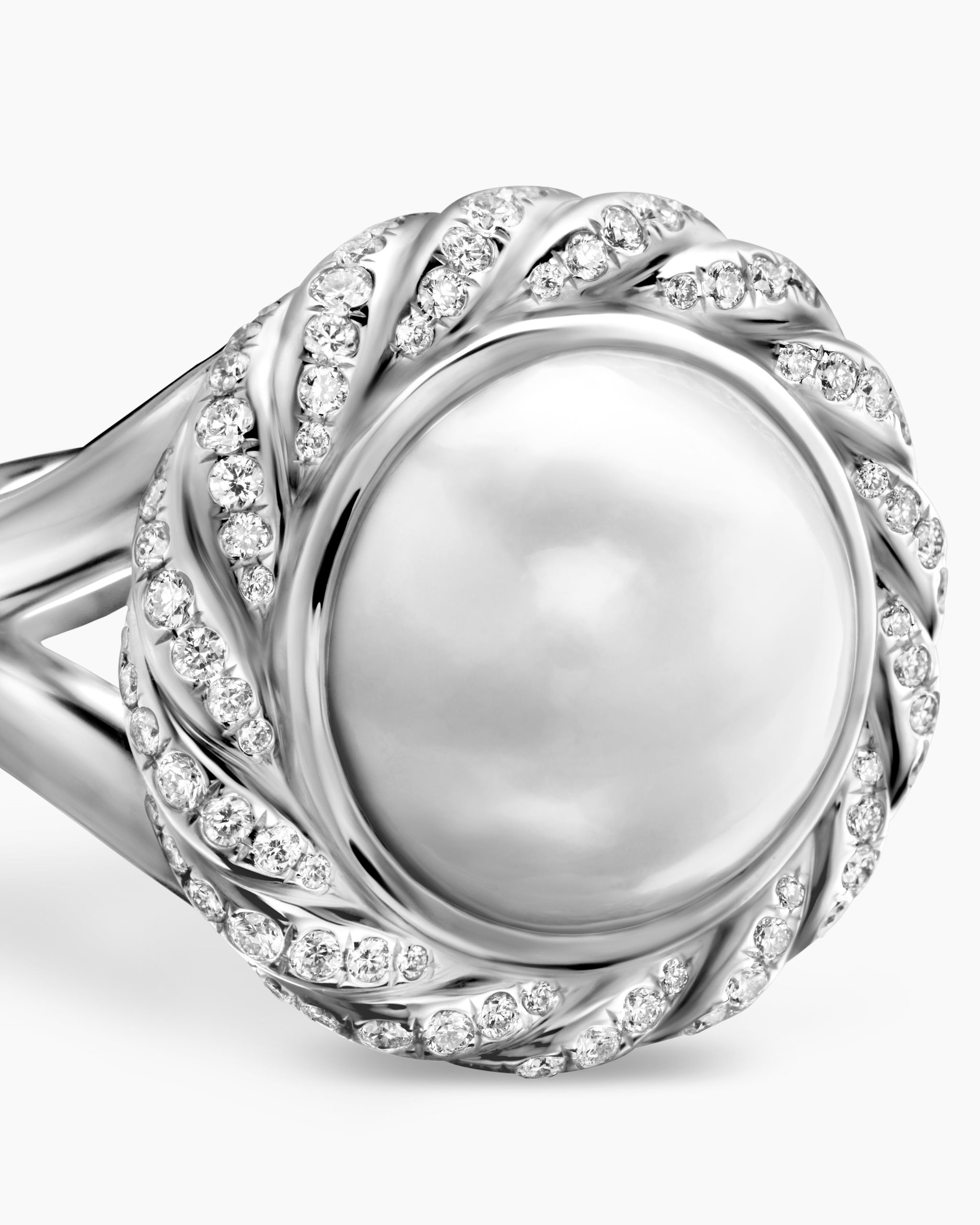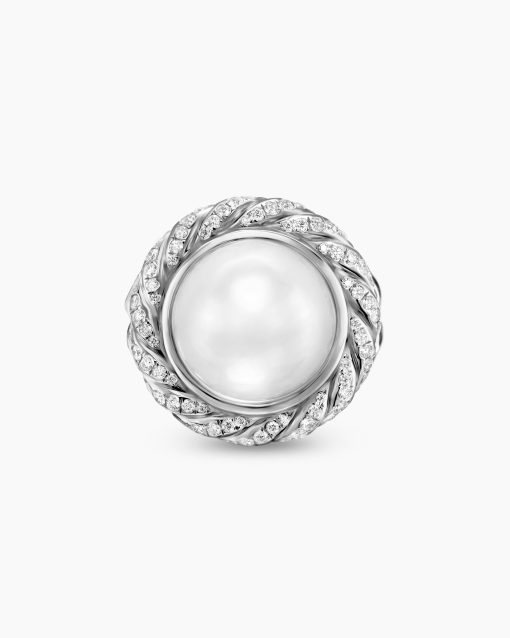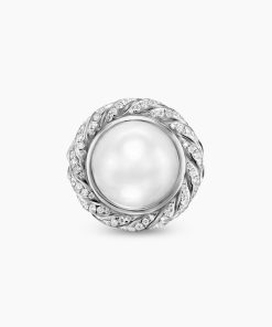 Gifts from nature, the lustrous beauty of pearls has always inspired our timeless designs. Sterling silverSouth sea white pearl, 15.7mmPavé-set diamonds, 0.58 total carat weightRing, 21mmThis item can be resized. Please contact customer care for more information.This item can be engraved. Please contact customer care for more information.