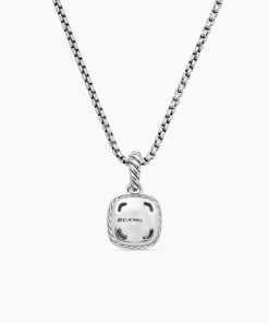 The Albion® Collection’s unique cushion-cut center stone was David Yurman’s innovative solution to use an oversize gemstone in a refined modern setting with classical proportions. Sterling silverBlue topaz, 1.83 total carat weightStone, 7mmPavé diamonds, 0.17 total carat weightPendant, 11mmChain, 1.5mmLobster clasp