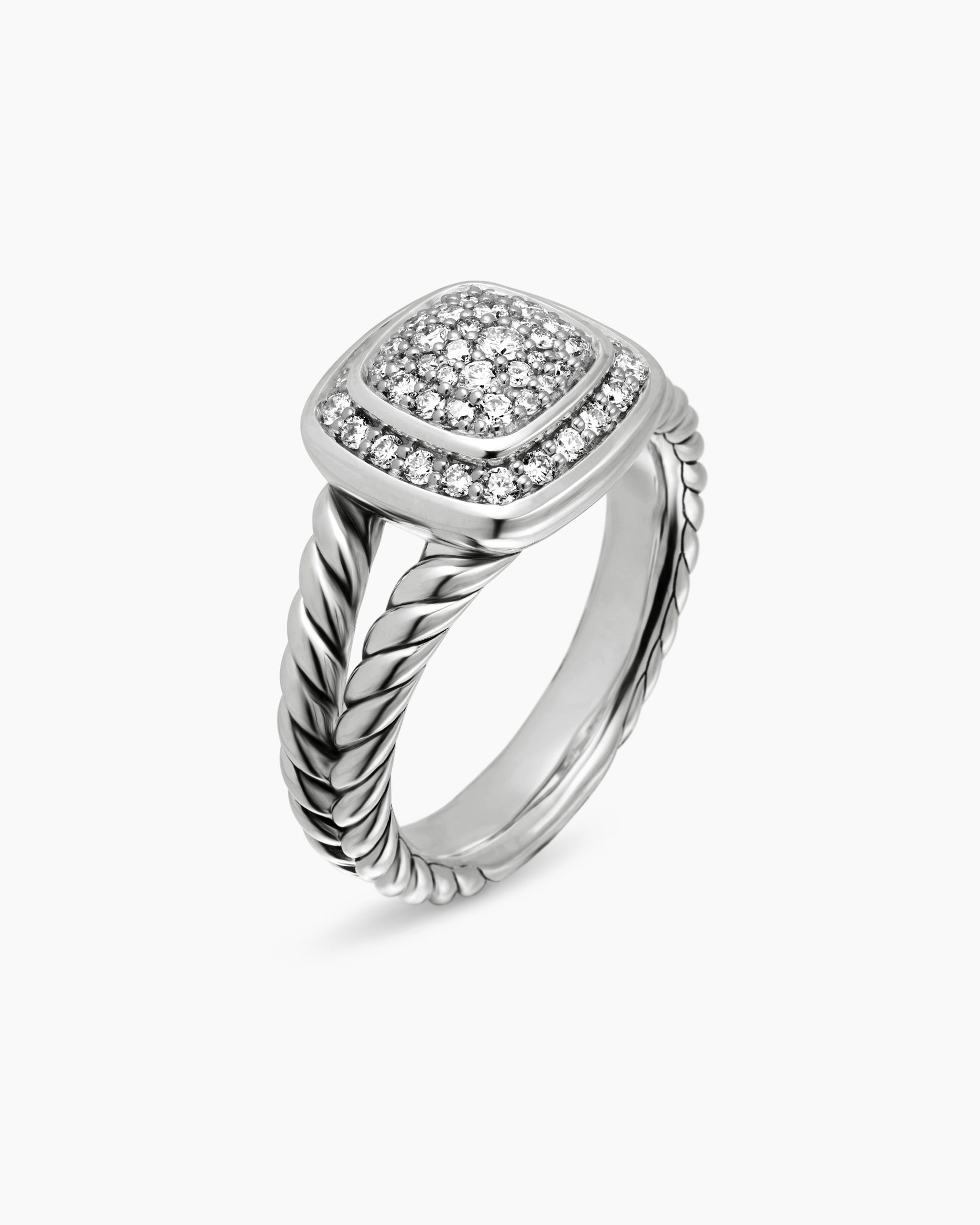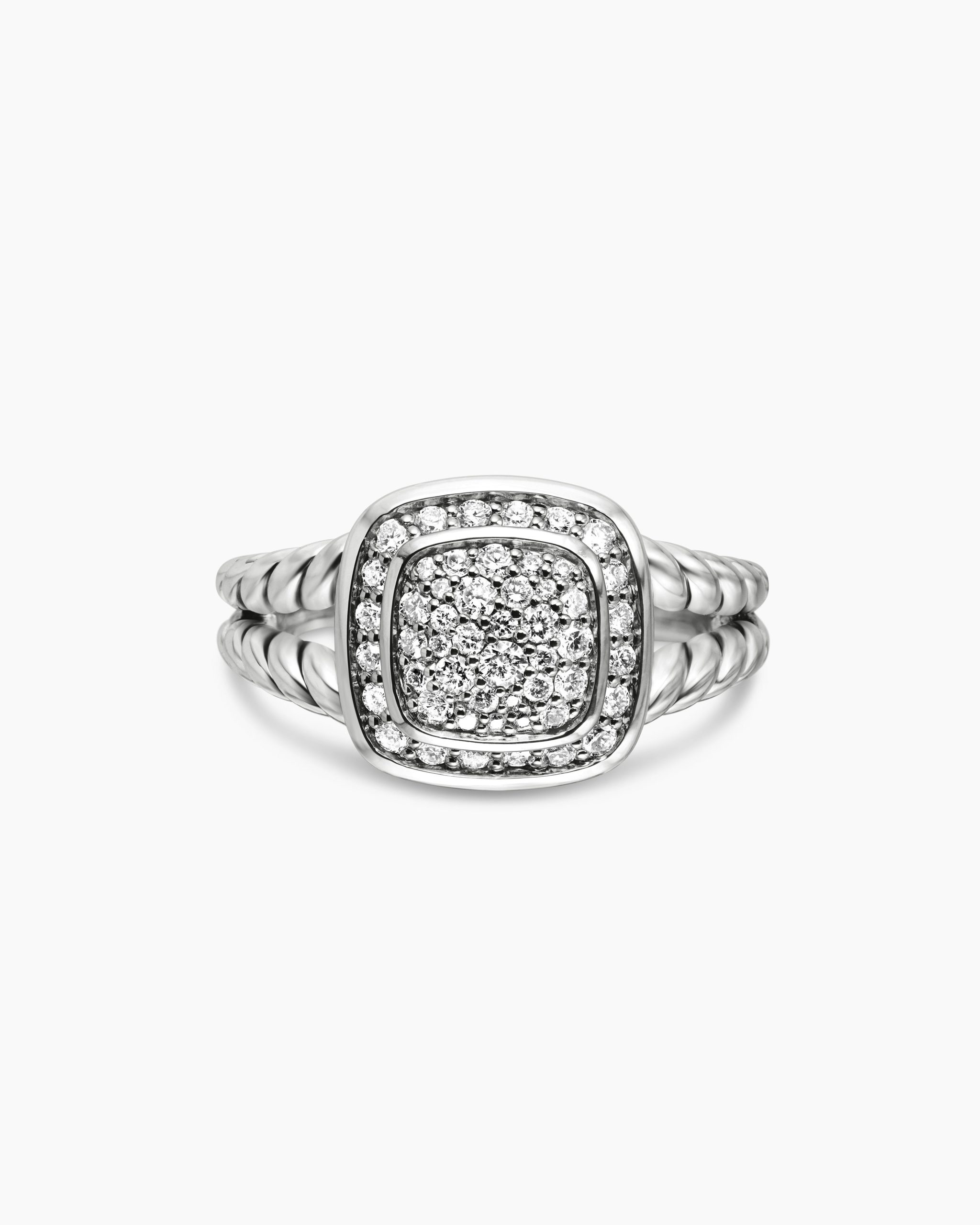 The Albion® Collection’s unique cushion-cut center stone was David Yurman’s innovative solution to use an oversize gemstone in a refined modern setting with classical proportions. Sterling silverPavé diamonds, 0.38 total carat weightRing, 11.8mmThis item can be resized. Please contact customer care for more information.This item can be engraved. Please contact customer care for more information.