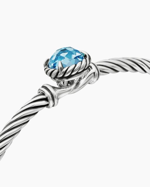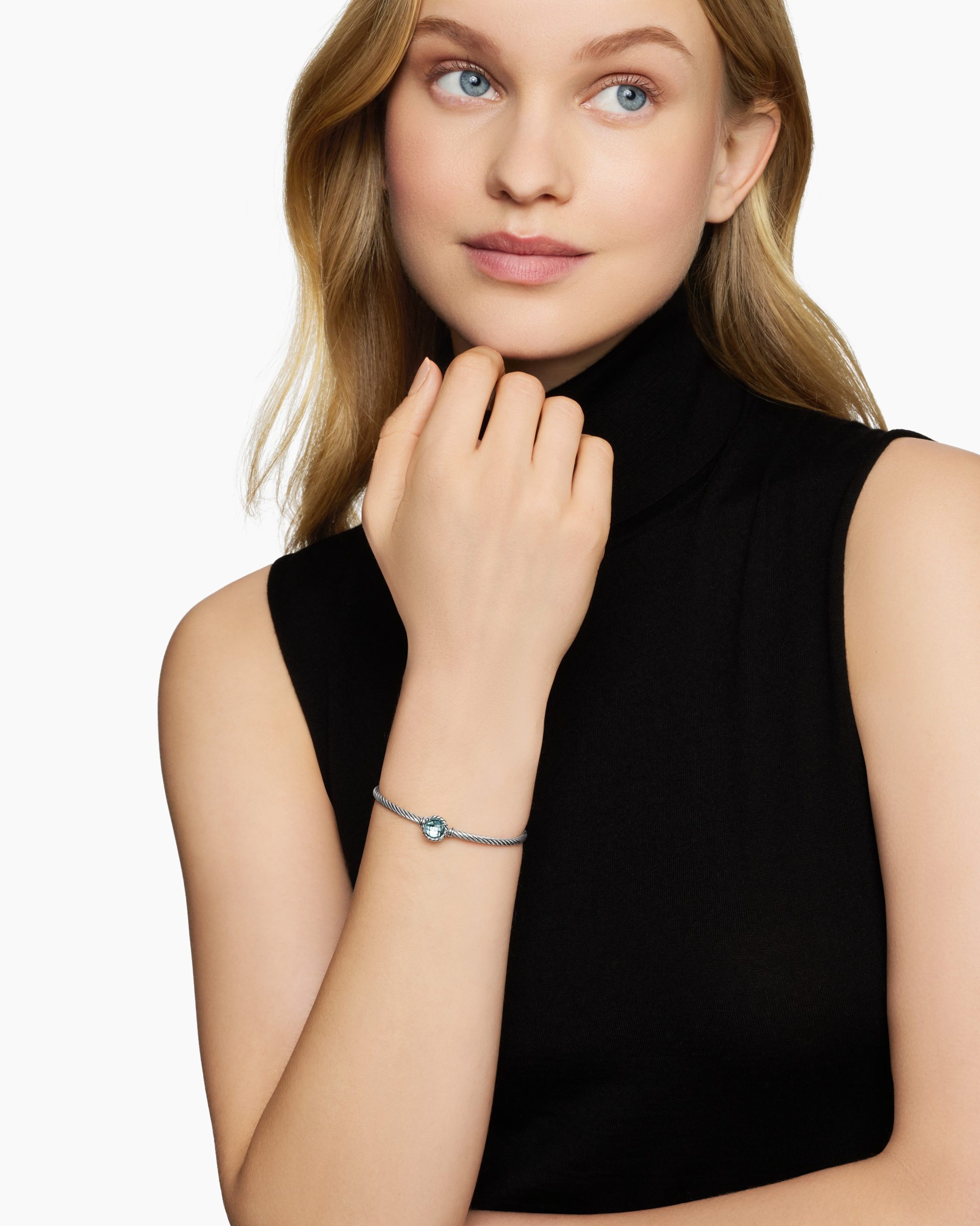 The Châtelaine® Collection is a perfect fusion of David and Sybil Yurman’s combined art—the marriage of a sculptor and a painter—form and color. Sterling silverBlue topaz, 2.57 total carat weightStone, 8mmBracelet, 3mmHook clasp