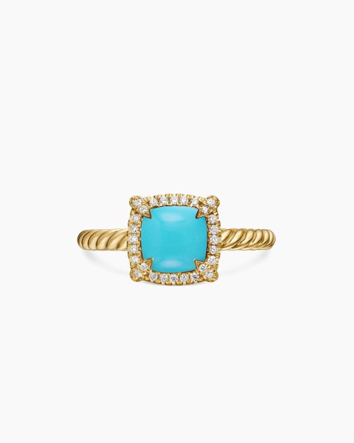 The Châtelaine® Collection is a perfect fusion of David and Sybil Yurman’s combined art—the marriage of a sculptor and a painter—form and color. 18-karat yellow goldTurquoise, 1.07 total carat weightStone, 7mmPavé diamonds, 0.11 total carat weightRing, 9.8mmThis item can be resized. Please contact customer care for more information.This item can be engraved. Please contact customer care for more information.