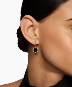 In this collection, David Yurman explores the circle—a timeless symbol of unity, a shape without beginning or end. 18-karat yellow goldBlack onyxPavé diamonds, 0.22 total carat weightEarring drop length, 22.6mmEarring diameter, 11mm
