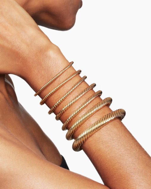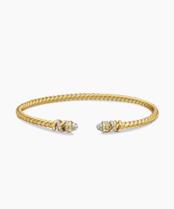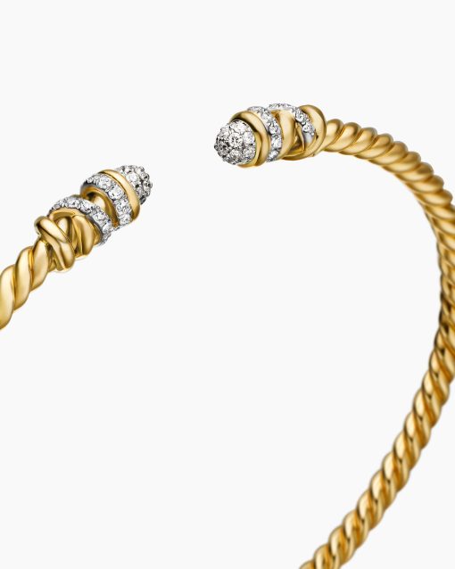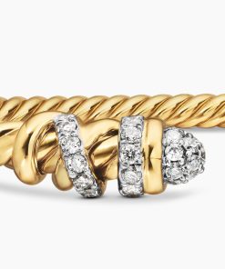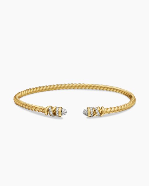 In the Helena Collection, David Yurman returns to the longer, leaner twist of his first handmade Cable bracelet, wrapping the iconic form with 18K yellow gold threads accented with hand-set pavé diamonds. 18-karat yellow goldPavé diamonds, 0.28 total carat weightBracelet, 3mmCablespira® is a patented DY construction that is highly flexible and exceptionally comfortable to wear.