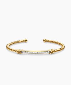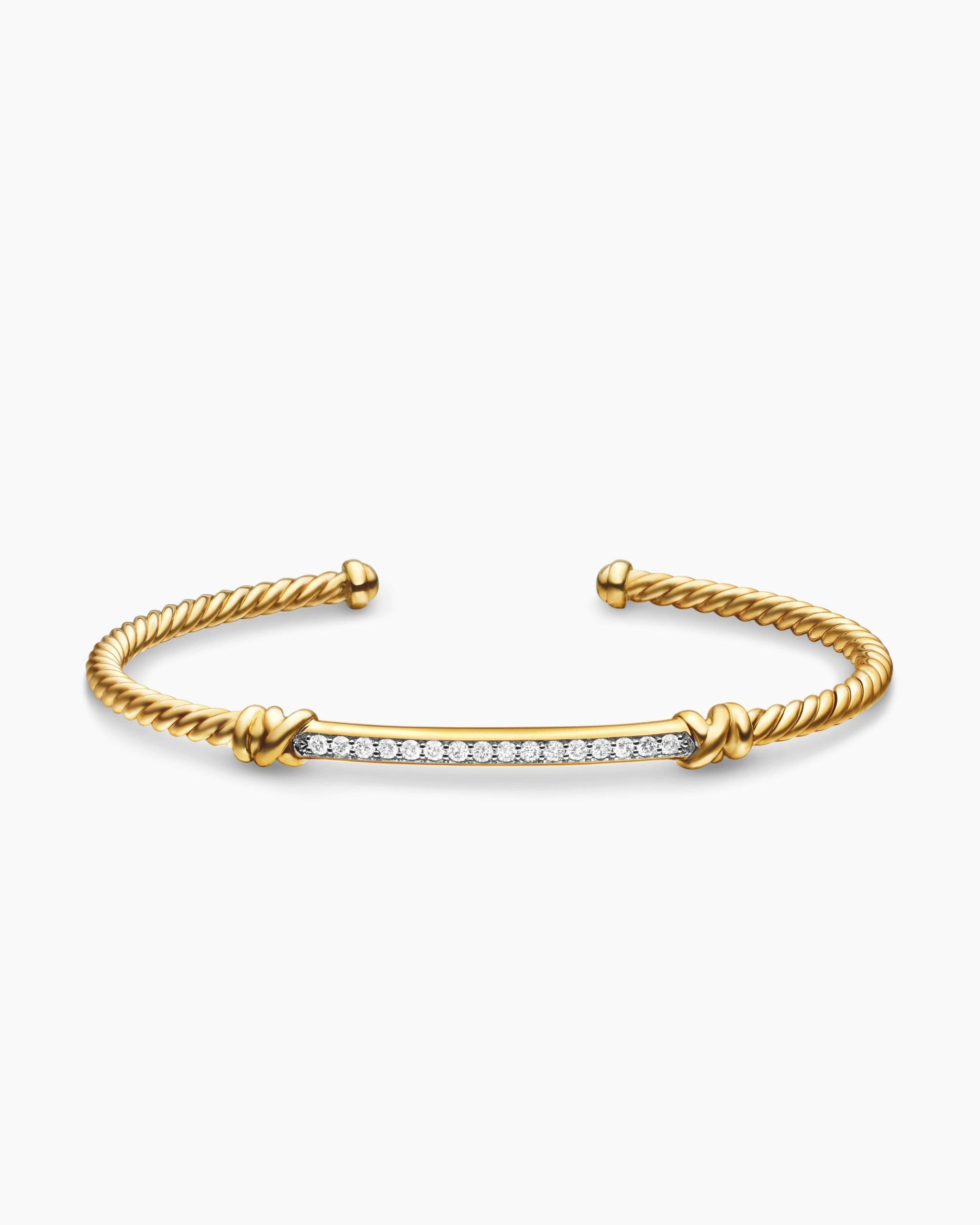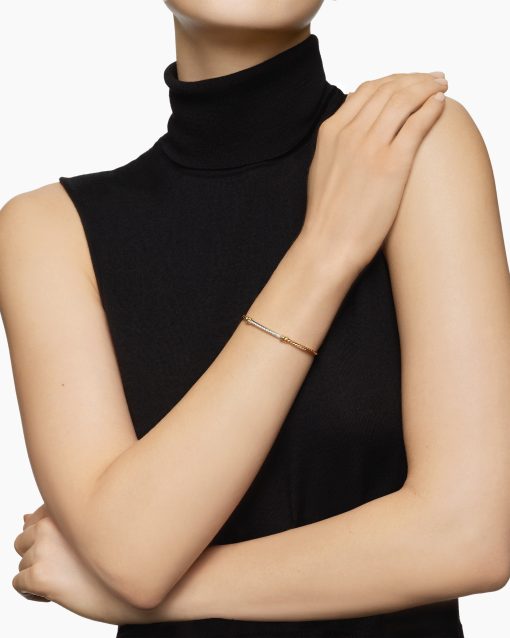 In the Helena Collection, David Yurman returns to the longer, leaner twist of his first handmade Cable bracelet, wrapping the iconic form with 18K yellow gold threads accented with hand-set pavé diamonds. 18-karat yellow goldPavé diamonds, 0.25 total carat weightBracelet, 3mmCablespira® is a patented DY construction that is highly flexible and exceptionally comfortable to wear.