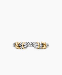 In the Helena Collection, David Yurman returns to the longer, leaner twist of his first handmade Cable bracelet, wrapping the iconic form with 18K yellow gold threads accented with hand-set pavé diamonds. Sterling silver with 18-karat yellow goldPavé diamonds, 0.16 total carat weightRing, 2.5mm