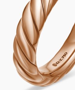 Inspired by his love of architecture and bas-relief sculpture, Evan Yurman designed this modern form by deconstructing Cable—the house’s signature motif—to its essence. Each timeless design is a wearable work of art. Precious metals are meticulously carved with mesmerizing wavelike patterns that dramatically catch the light. Elegant curves highlight the sensuality of the body.18-karat rose goldRing, 4.6mmThis item can be engraved. Please contact customer care for more information.