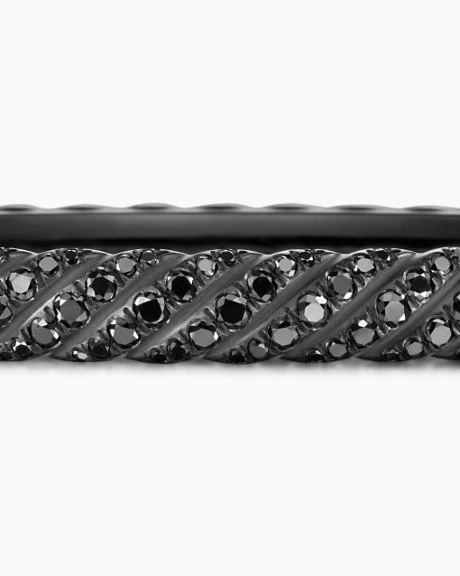 Inspired by his love of architecture and bas-relief sculpture, Evan Yurman designed this modern form by deconstructing Cable—the house’s signature motif—to its essence. Each design is a wearable work of art; precious metals are meticulously carved with exquisite wavelike patterns that dramatically catch the light. Elegant curves highlight the sensuality of the body, with pavé-set diamonds for a statement of added brilliance.Black titaniumPavé-set black diamonds, total carat weight ranges from 0.84 to 1.28 (dependent on size)Bracelet, 4.6mmPush clasp