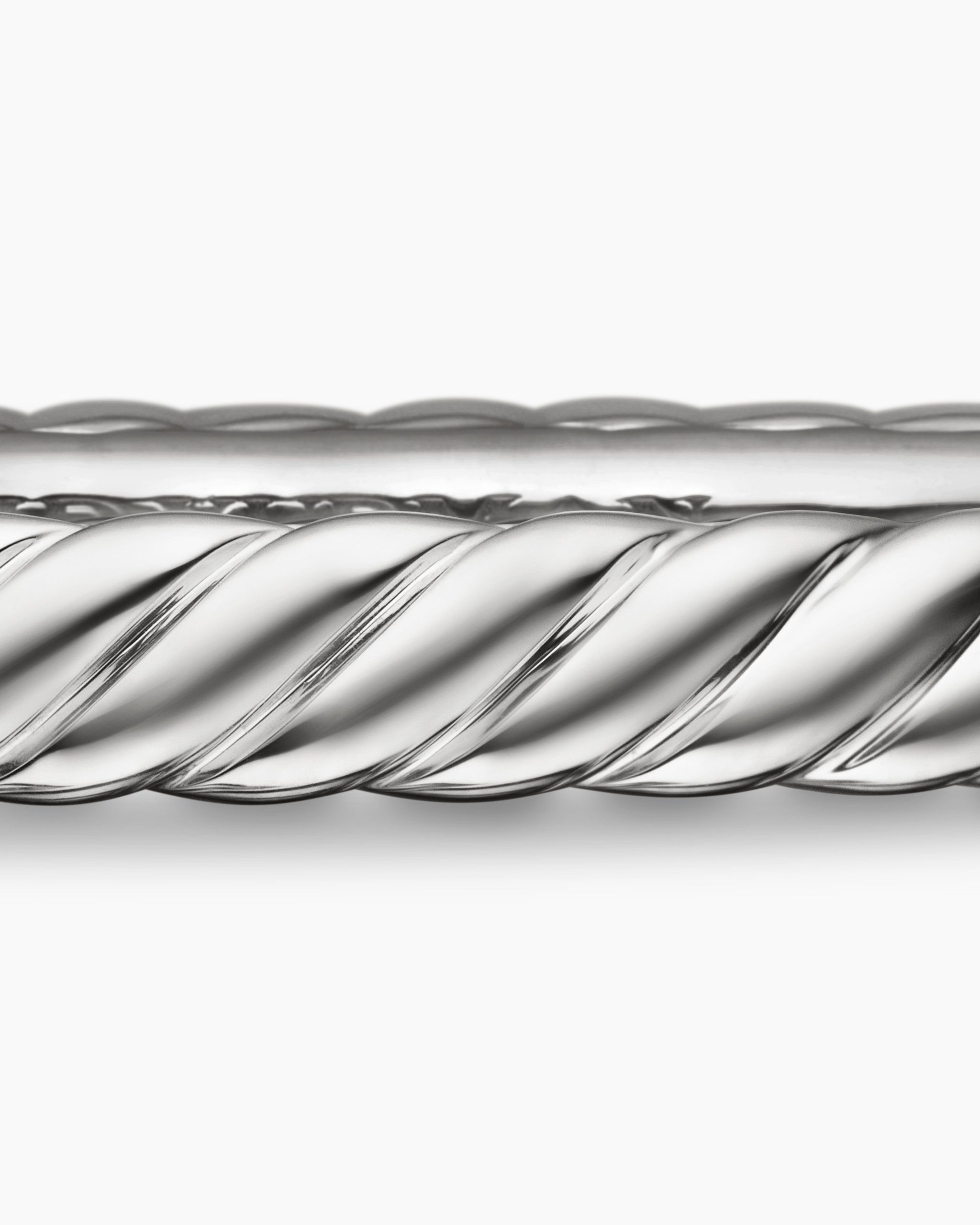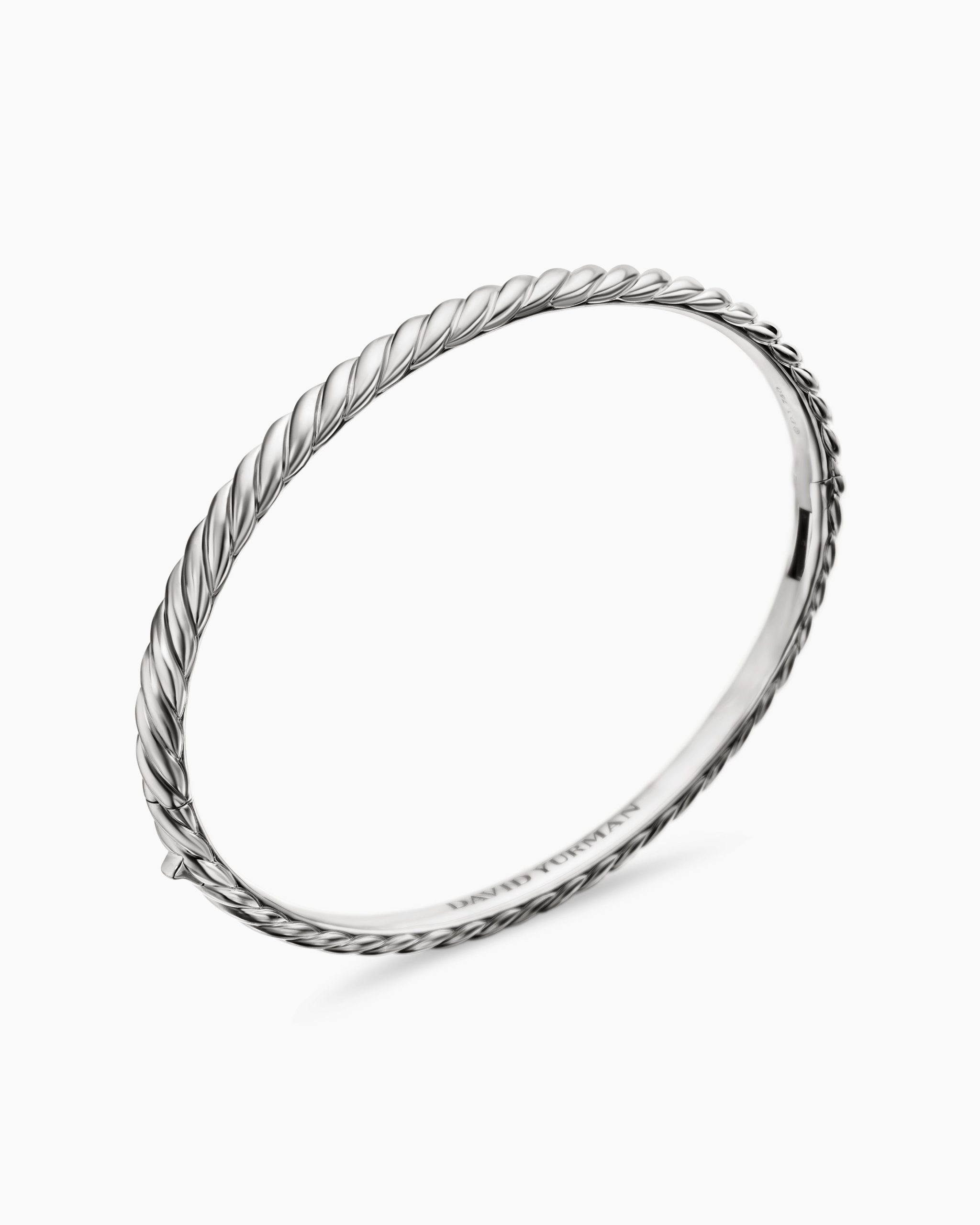 Inspired by his love of architecture and bas-relief sculpture, Evan Yurman designed this modern form by deconstructing Cable—the house’s signature motif—to its essence. Each timeless design is a wearable work of art. Precious metals are meticulously carved with mesmerizing wavelike patterns that dramatically catch the light. Elegant curves highlight the sensuality of the body.18-karat white goldBracelet, 4.6mmHinge clasp