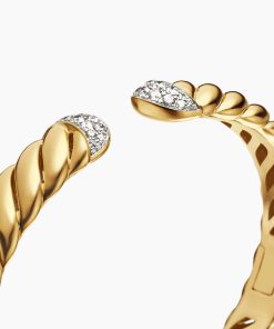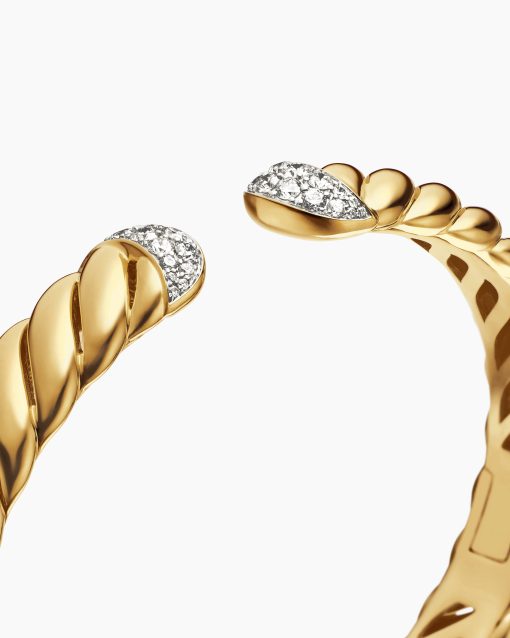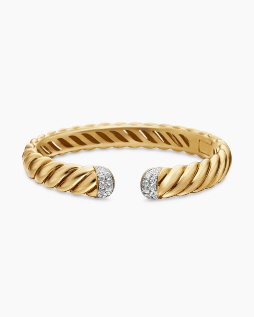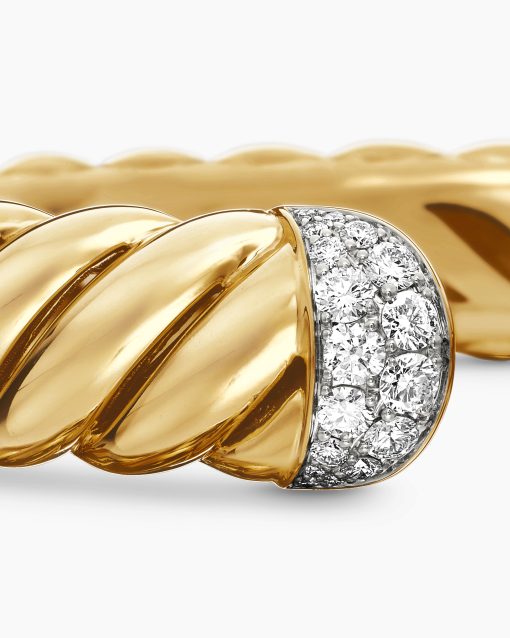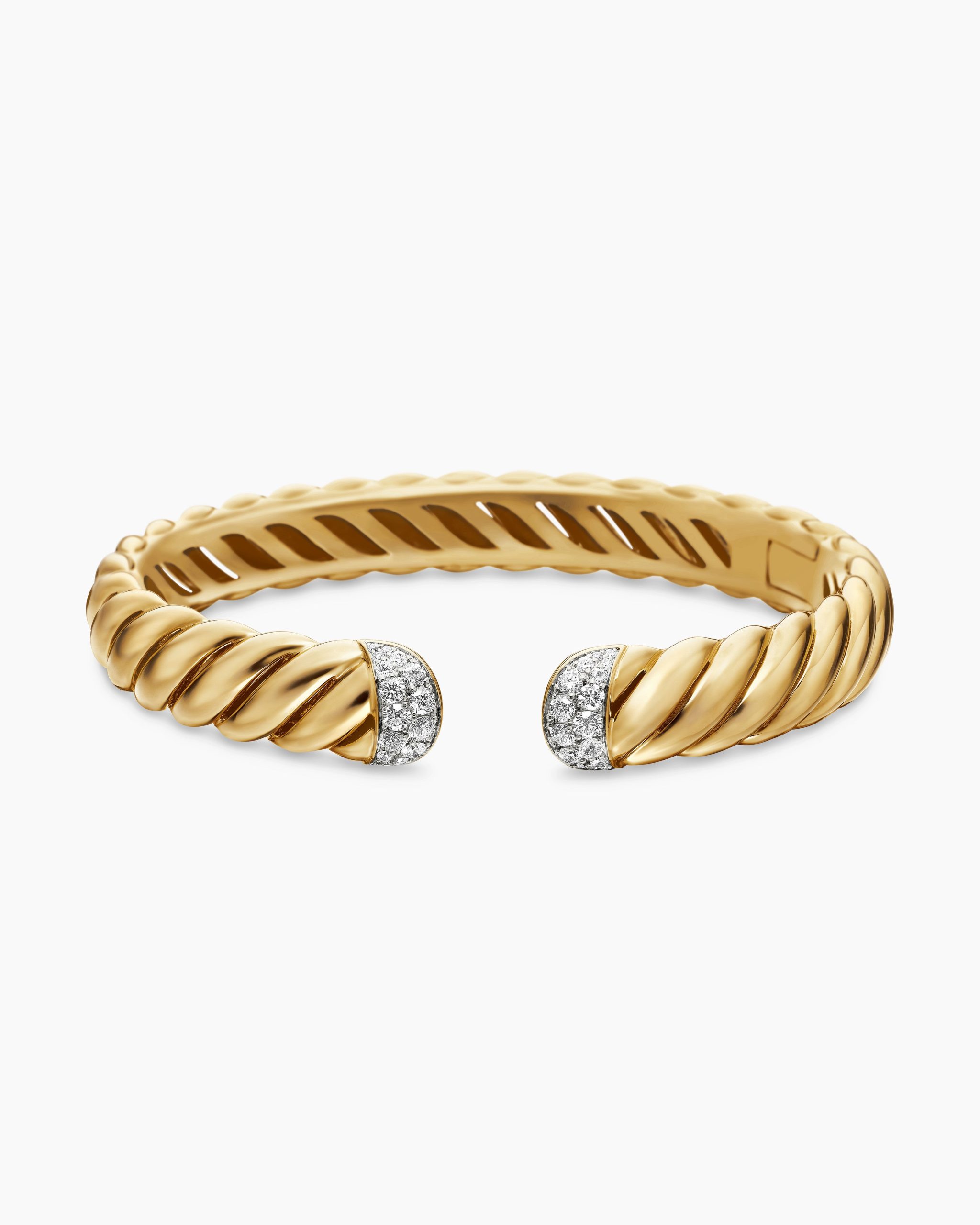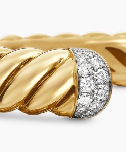 In Sculpted Cable, David Yurman transforms his signature design motif into a carved form. The effect is an entrancing wavelike pattern that retains the dimensional look of Cable’s original helix. 18-karat yellow goldPavé diamonds, 0.60 total carat weightBracelet, 10mmPush clasp