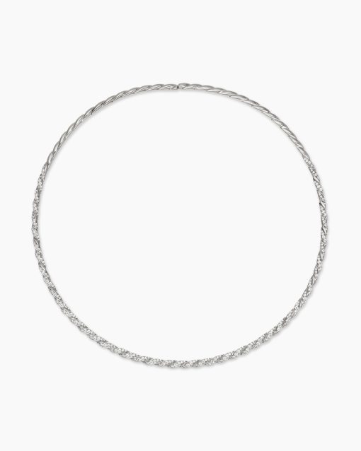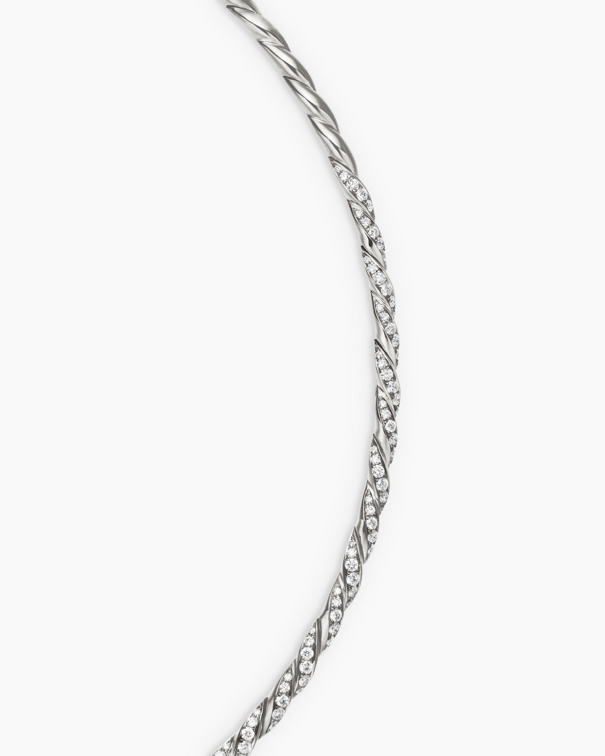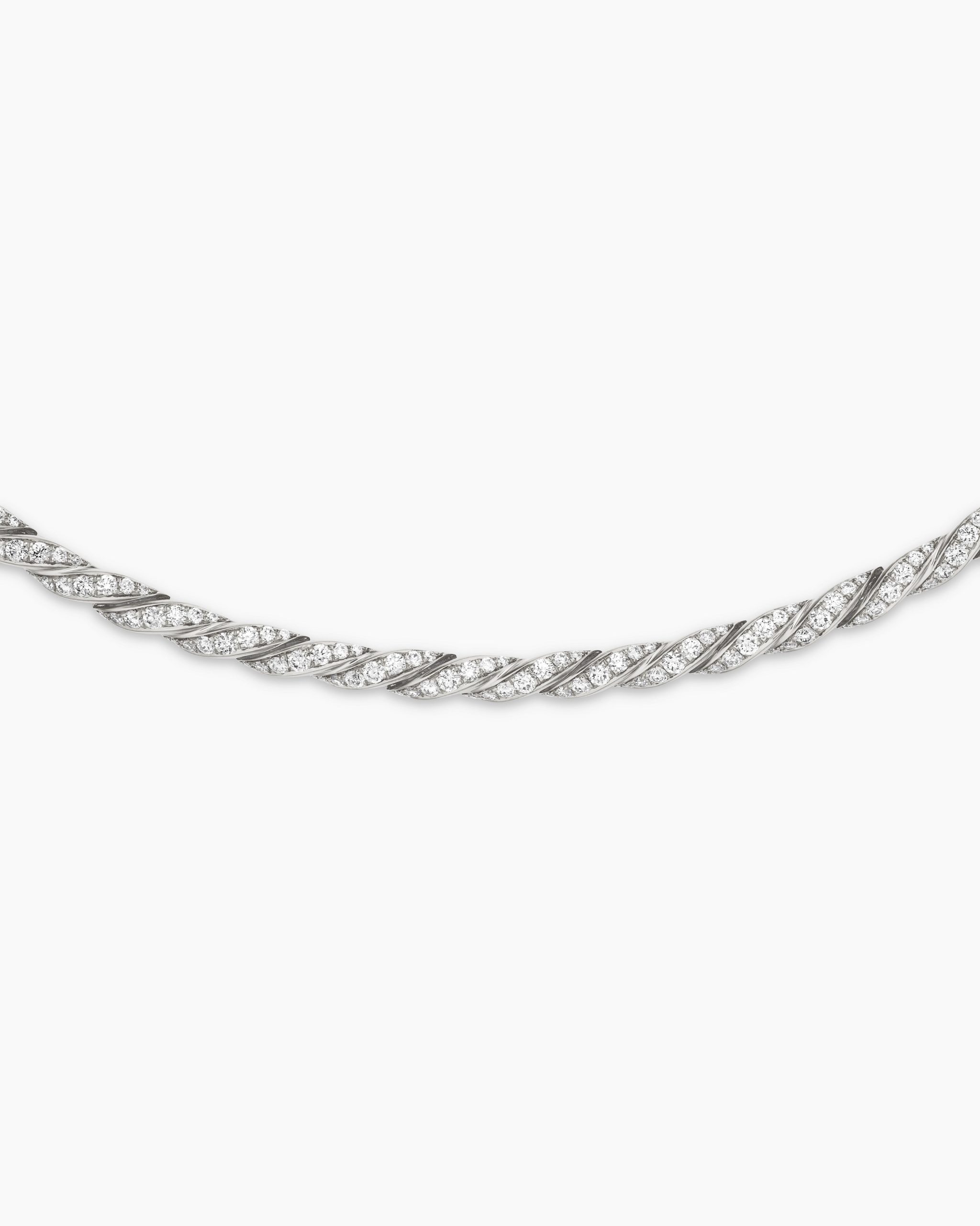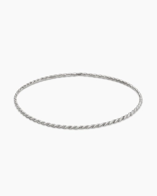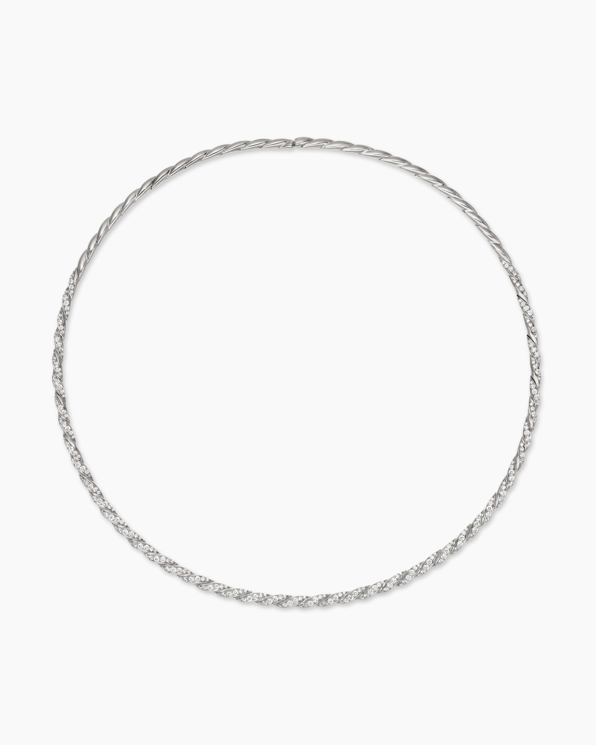 Through innovative engineering, this Pavéflex® design twists and moves with ease while never forgetting its elegant form. An opening in the back allows it to expand to fit a range of sizes. 18-karat white goldPavé diamonds, 2.81 total carat weightNecklace, 3.7mmState-of-the-art flexibility delivers exceptional comfort and ease of wear.