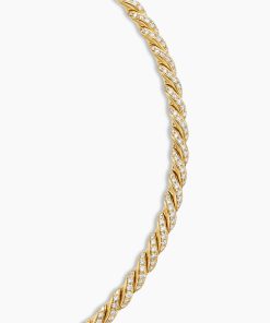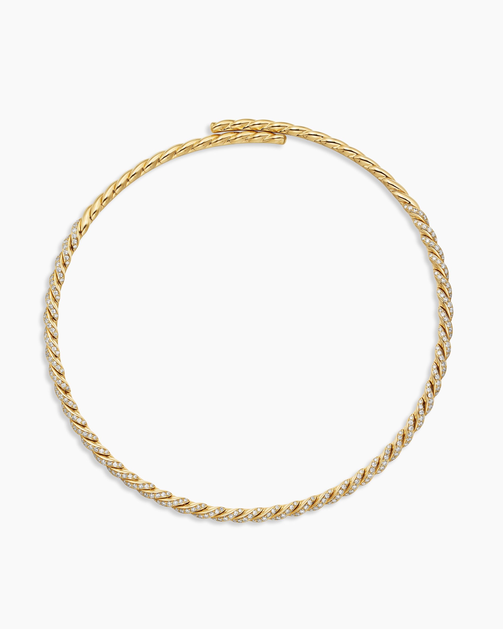 Through innovative engineering, this Pavéflex® design twists and moves with ease while never forgetting its elegant form. An opening in the back allows it to expand to fit a range of sizes. 18-karat yellow goldPavé diamonds, 4.51 total carat weightNecklace, 5mmState-of-the-art flexibility delivers exceptional comfort and ease of wear.