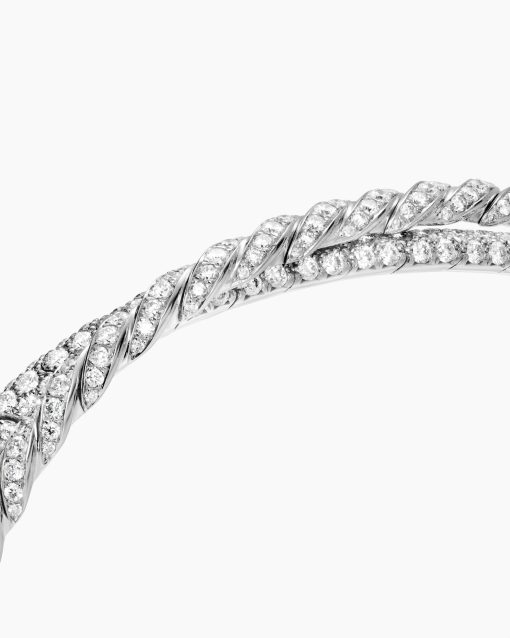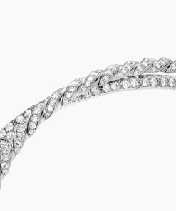 Inspired by his love of architecture and bas-relief sculpture, Evan Yurman designed this modern form by deconstructing Cable—the house’s signature motif—to its essence. Each design is a wearable work of art; precious metals are meticulously carved with exquisite wavelike patterns that dramatically catch the light. Elegant curves highlight the sensuality of the body, with pavé-set diamonds for a statement of added brilliance.18-karat white goldPavé-set diamonds, 2.78 total carat weightBracelet, 16mmState-of-the-art flexibility delivers exceptional comfort and ease of wear.