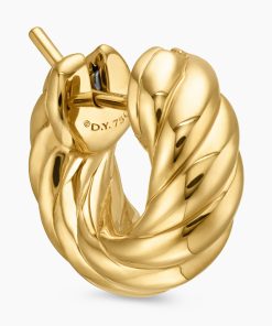 In Sculpted Cable, David Yurman transforms his signature design motif into a carved form. The effect is an entrancing wavelike pattern that retains the dimensional look of Cable’s original helix. 18-karat yellow goldEarrings, 14.4 x 5.4mm