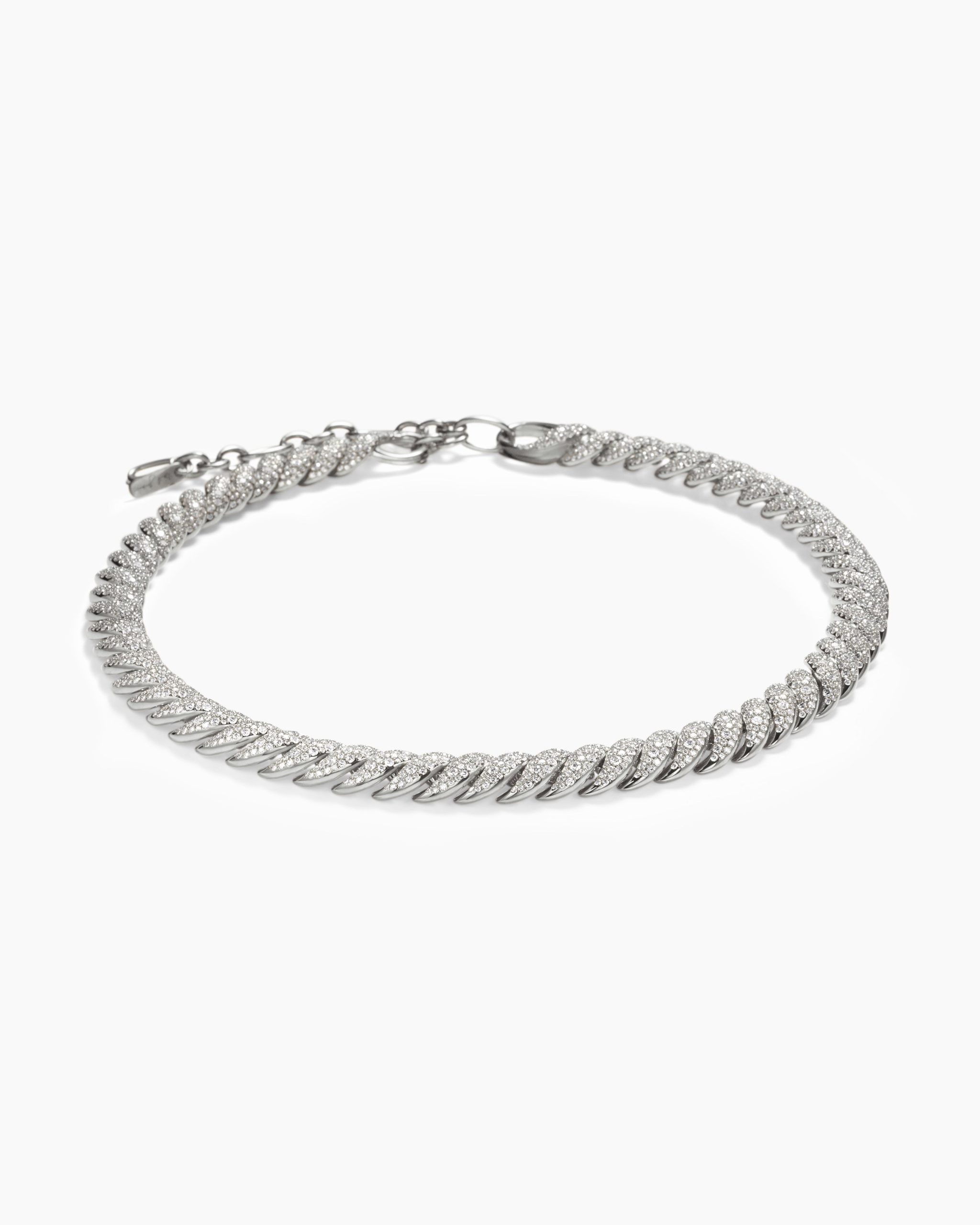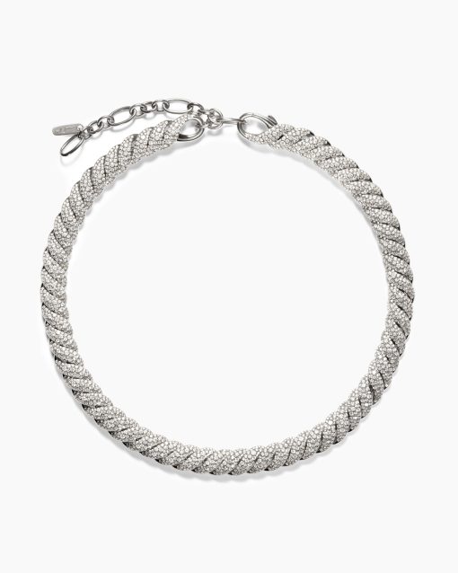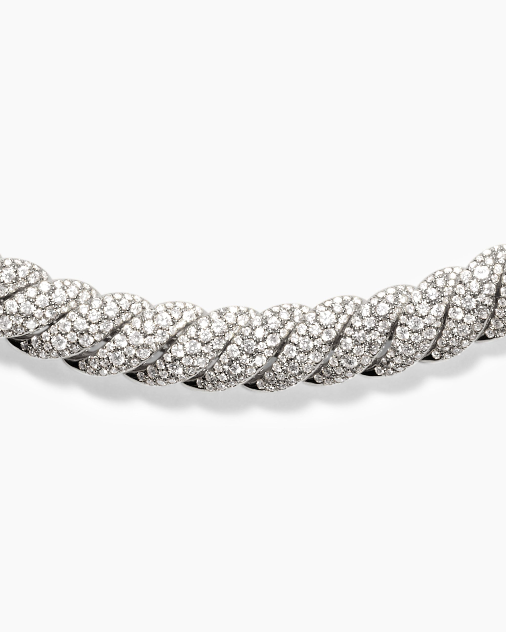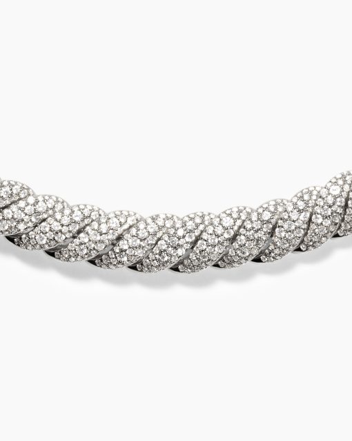 In Sculpted Cable, David Yurman transforms his signature design motif into a carved form. The effect is an entrancing wavelike pattern that retains the dimensional look of Cable’s original helix. 18-karat white goldPavé-set diamonds, 13.00 total carat weightAdjustable length, 14.5-18inNecklace, 8.5mmPush clasp