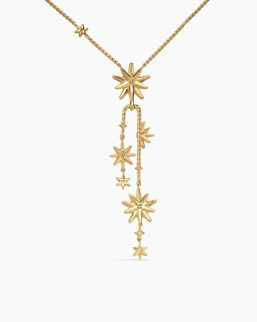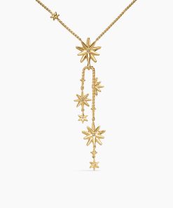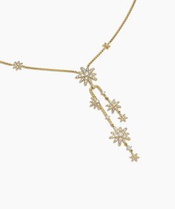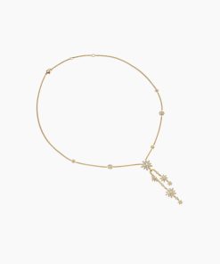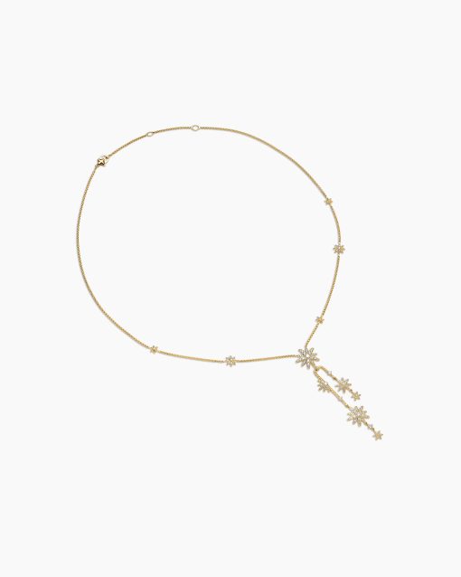 Starburst was born from David and Sybil Yurman’s experience watching fireworks illuminate the Paris night sky. The magical bursts of light greatly moved Sybil, inspiring David to create designs of brilliant star motifs. 18-karat yellow goldPavé diamonds, 1.22 total carat weightAdjustable length, 17-18inPendant, 66mmChain, 1.25mmLobster clasp