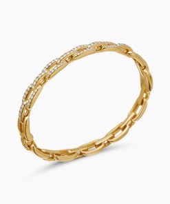 Stax is a contemporary interpretation of elements signature to David Yurman. Combinations of different metal finishes and design motifs define this collection 18-karat yellow goldPavé diamonds, 1.26 total carat weightBracelet, 7mmPush clasp